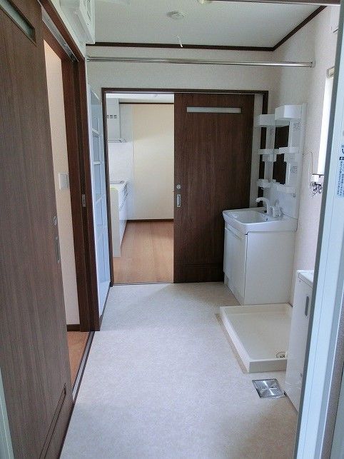 キッチン → 洗面化粧室 → 浴室と生活動線の続く間取りにしました!!