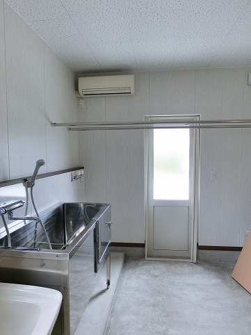 施主様より、犬小屋を広く快適にしてほしいとの要望がありました。 ドックバスや冷暖房完備し、外と室内から出入りできるようにしたことで、施主様とワンちゃん達がいつでもふれあえるようになりました。