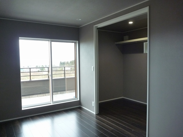 広いウォークインクローゼットです。たくさん、収納出来ます。寝室からは、バルコニーに出ることが出来ます。バルコニーは、南フランスの石バルゲアンティーカをモチーフにした、ベージュから明るく深みのある色が特徴のタイルを使用しています。石そのもののゴツゴツ感を残したことで、滑防止効果もあります。