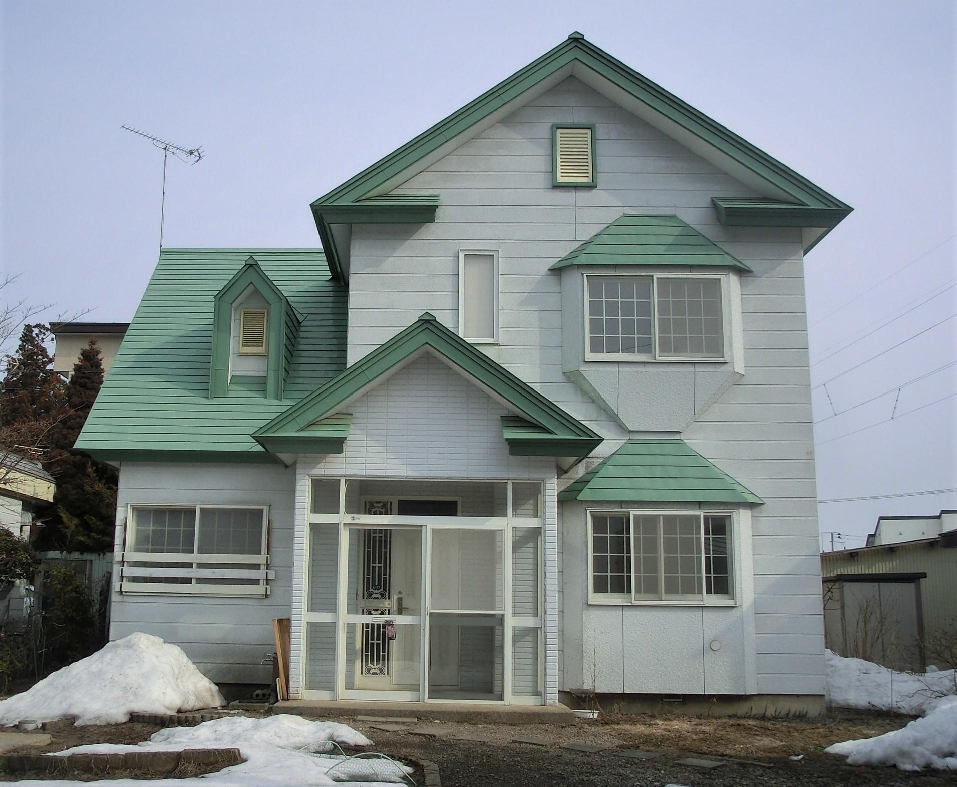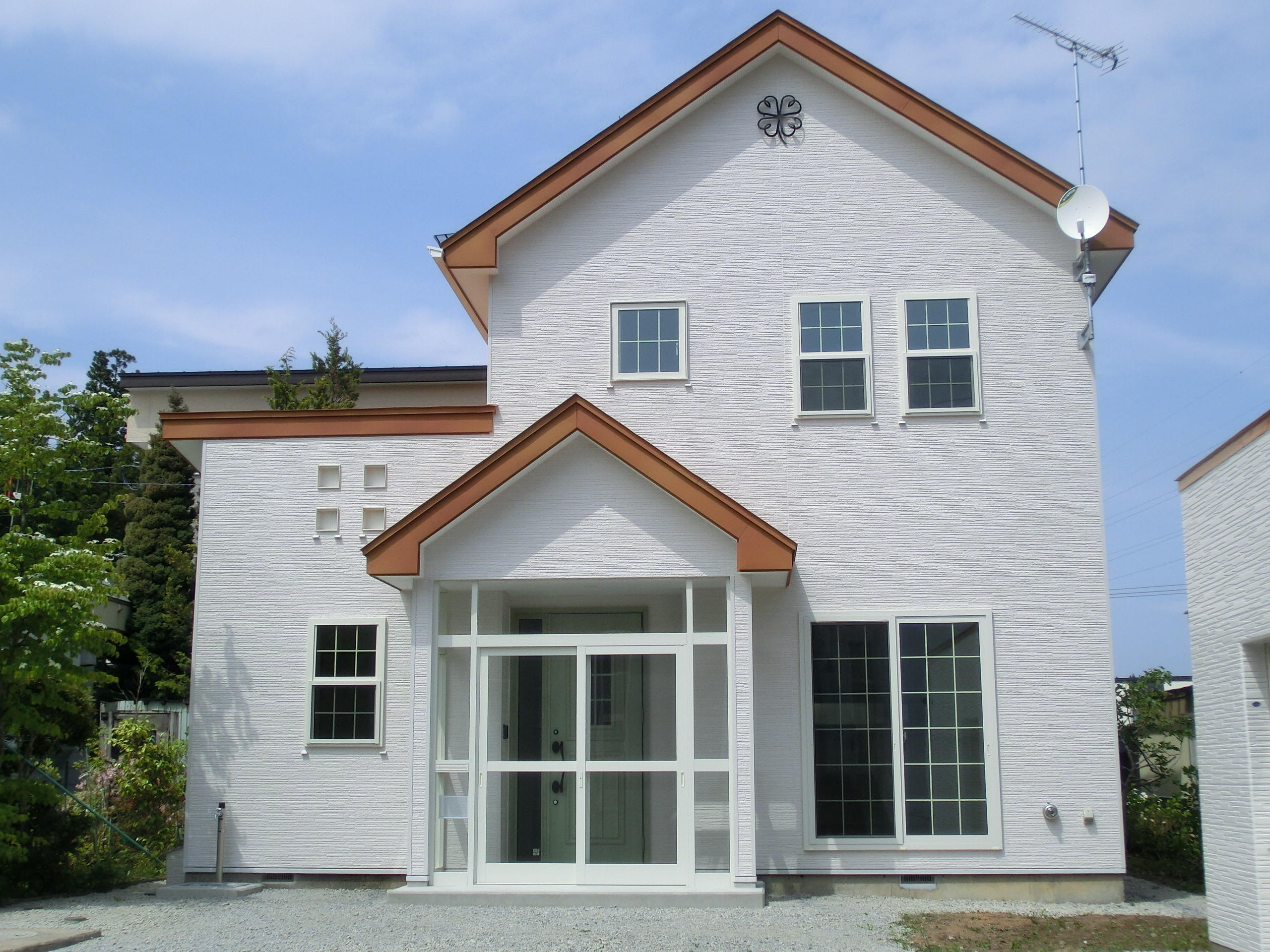 ガラス部分から優しい光りが差し込みます。リーフグリーンが白い外壁に映えます。