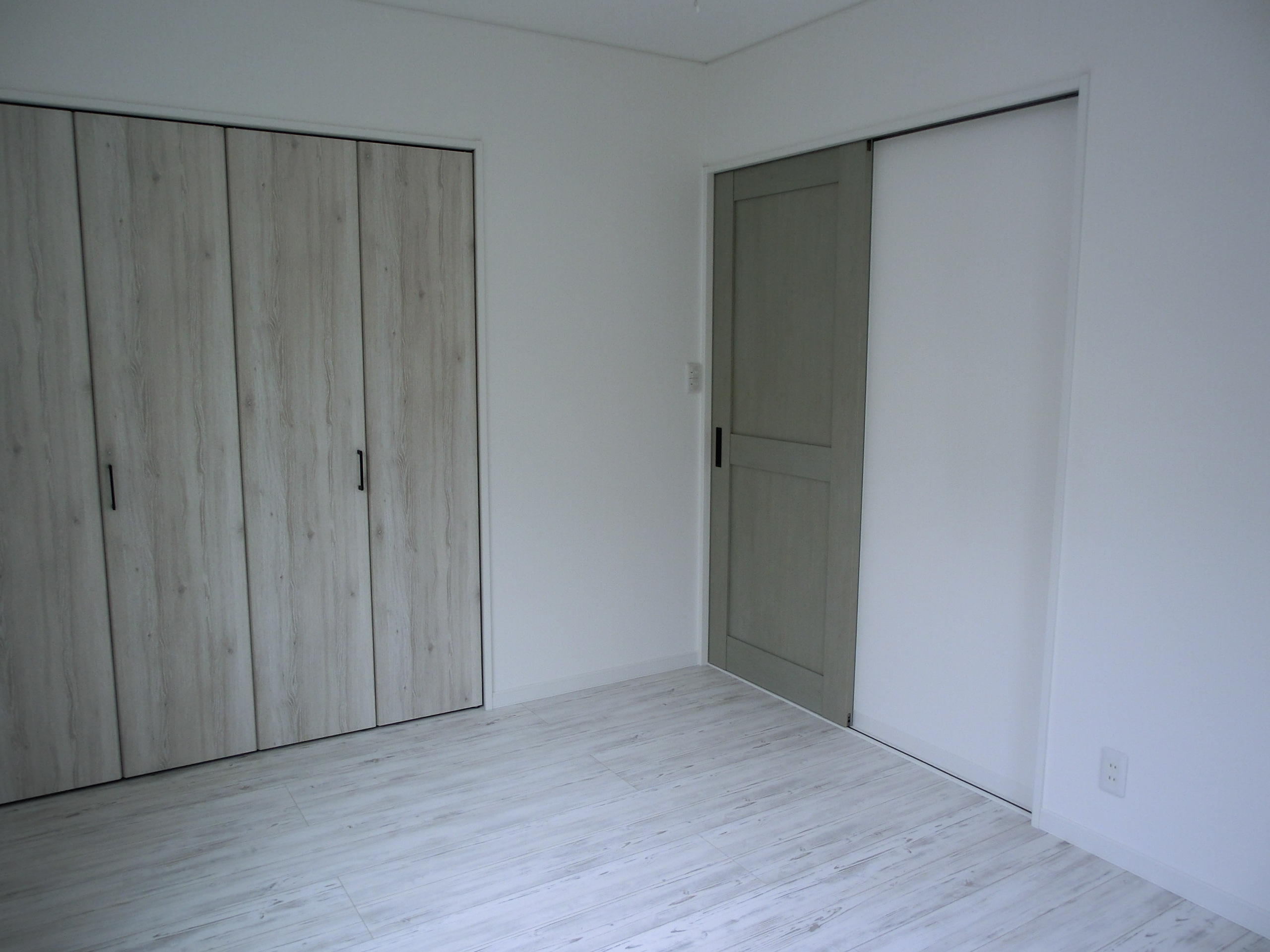 メンテナンスの手間やバリアフリーなども考えて、1階にある和室を洋室にしました。引戸は、ラシッサDパレット、グリーペイントを使用しています。