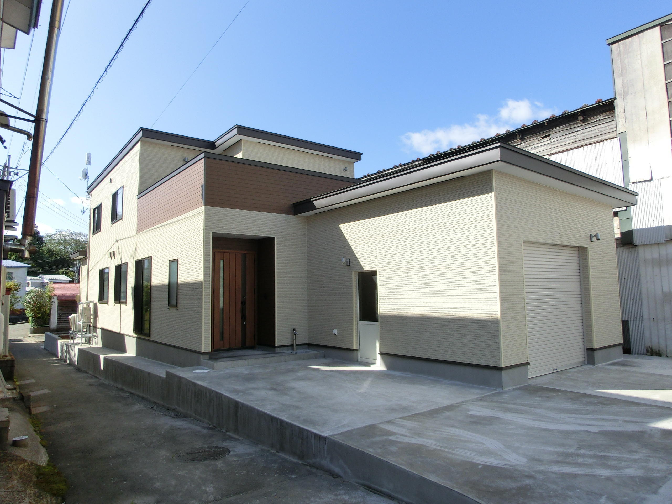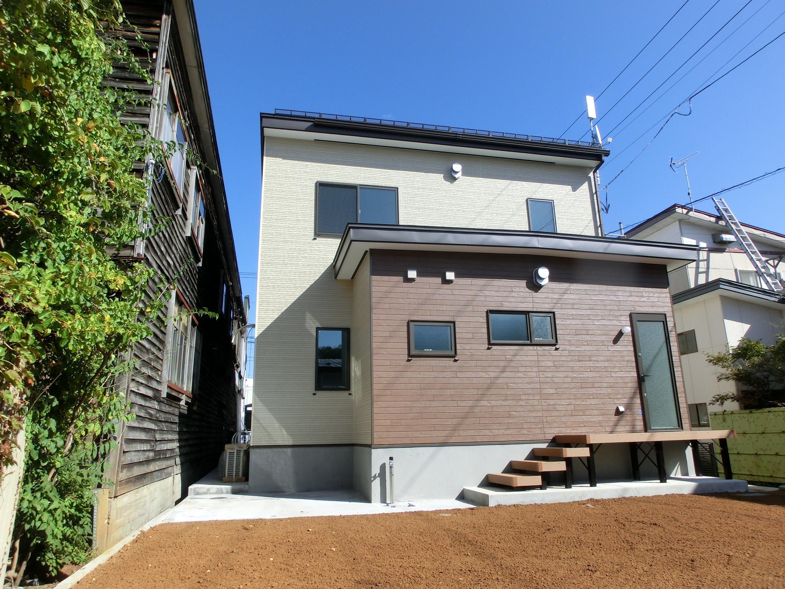 外壁 ニチハ ソルジュストーン スベラMGオーカー アクセント外壁 ニチハ グレアウッド アルプMGブラウン 玄関断熱ドア LIXIL ジエスタ2 防火戸 k2 D13型 ミディアムチェリー