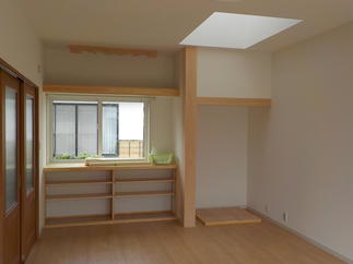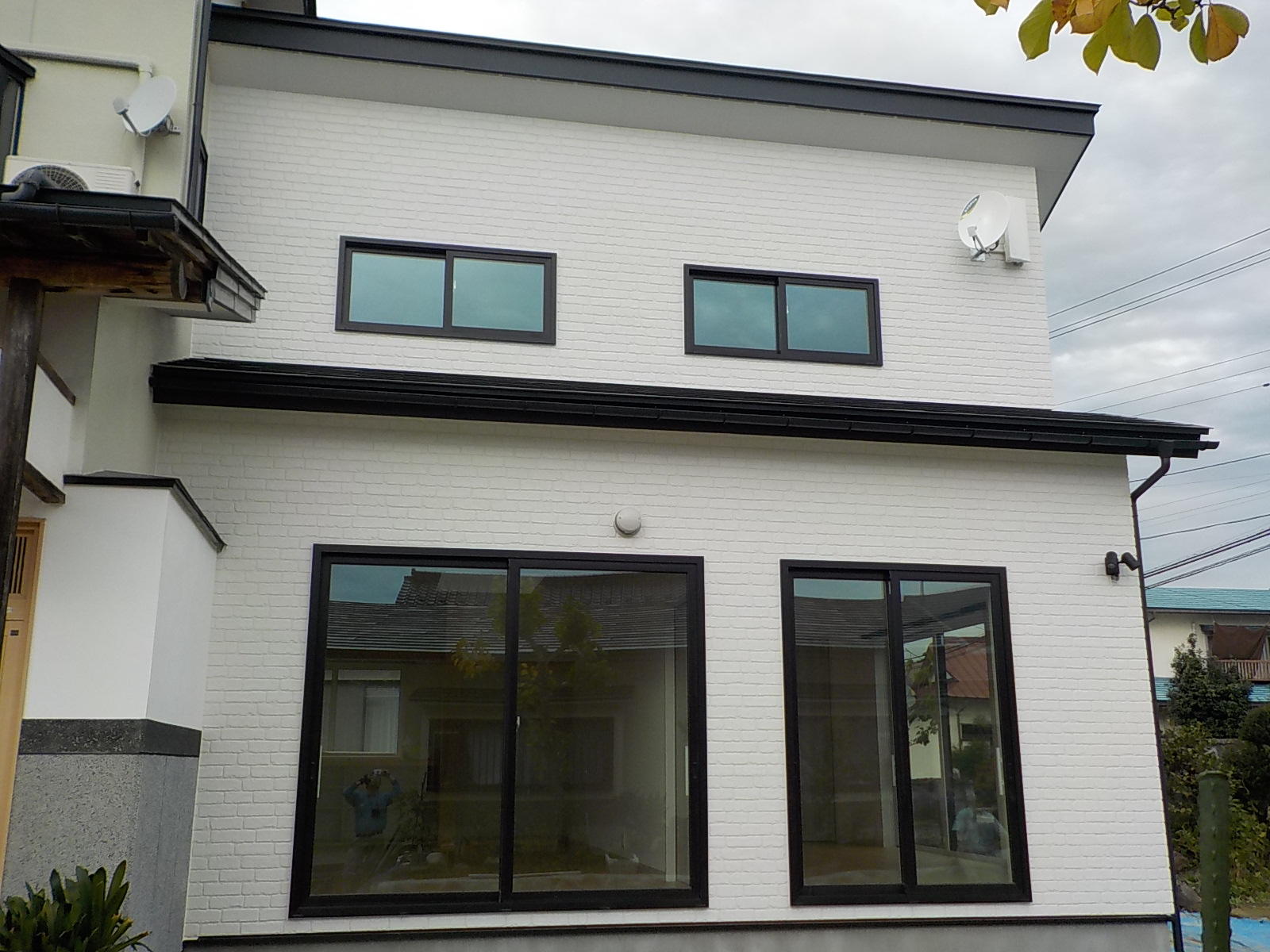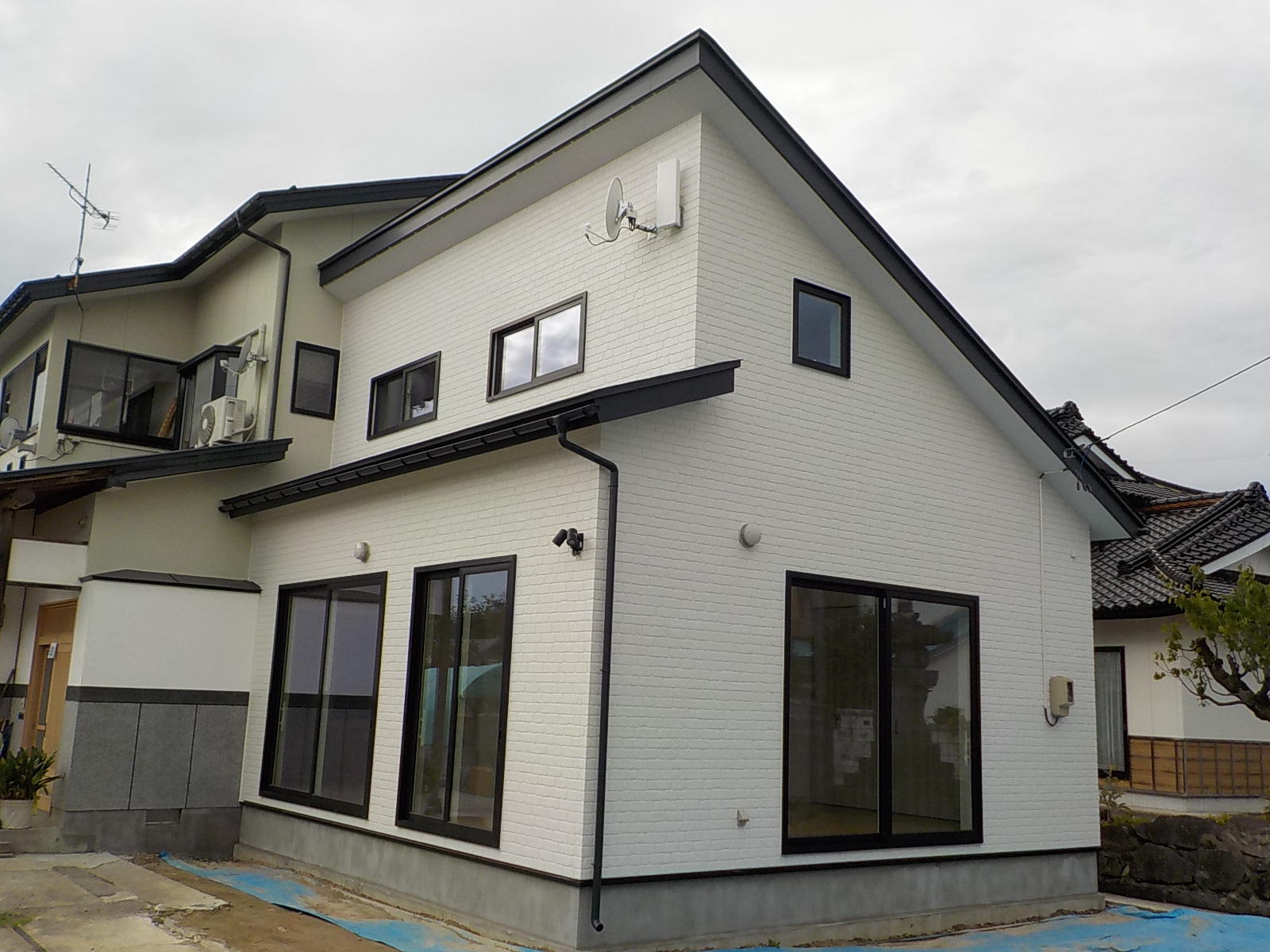 母屋を一部解体し、新しく増築しました! 全体を白でまとめ、スッキリとシンプルな外観になりました。 内装は神棚や造作棚等も造作しました。