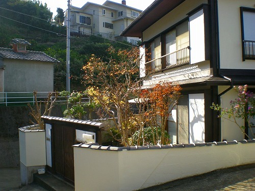 せっかくの素敵な塀が台無し・・・(T T) 太陽を浴びて、まるで旅館のような佇まい!