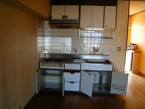 BEFORE キッチン周りの壁はタイルからキッチンパネルに貼り替え・・・お掃除し易くなりました!