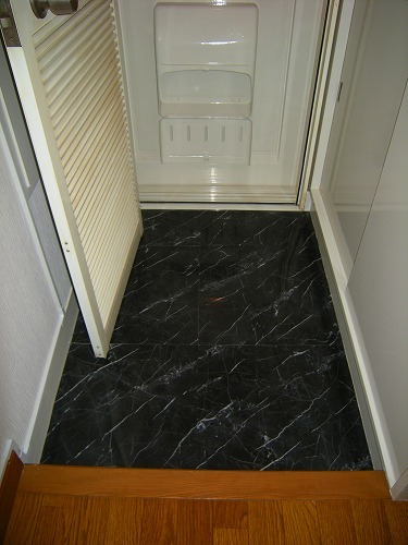 水栓は使い易いシングルレバーに交換、キッチンの幅を少しだけ狭くして洗濯機置き場を確保しました!