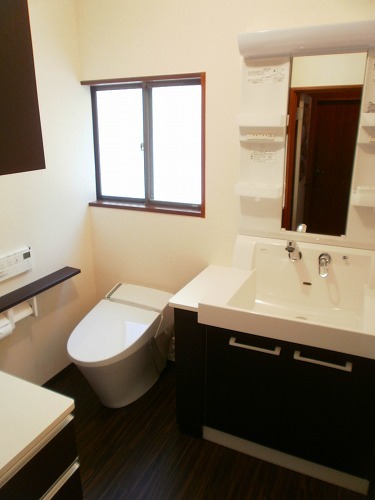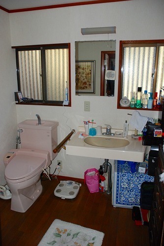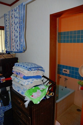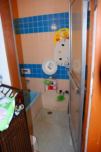単独の洗面台なので、細々としたモノを収納するスペースがありませんでした。欲しいモノにすぐに手が届くのはとても便利なのですが・・・もうちょっとスッキリさせたい(TT)冷たいタイル貼りの浴室をユニットバスに!壁面収納を設置して収納力UP!