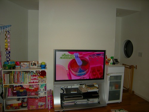 これぞ『リフォームマジック』!最初は、「エアコンの効率が良くないから、リビングと階段との間の開口にロールスクリーンを付けて欲しい!」というご要望だったのですが・・・。「子供の成長と共にモノが増えてしまったので、それを収納出来るテレビボードが欲しいの!」というご要望が奥様から出てきて、「それでは、ロールスクリーンではなく、家具の中に組み込んだ方がスッキリしますよ!」という事で、家具の背面に引戸を収納出来るように造作家具を作成致しました!