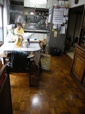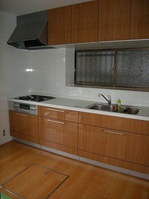 使い勝手の良い奥様好みのキッチンです。フローリング貼り替え工事。天版がピカピカです。お手入れが行き届いています。
