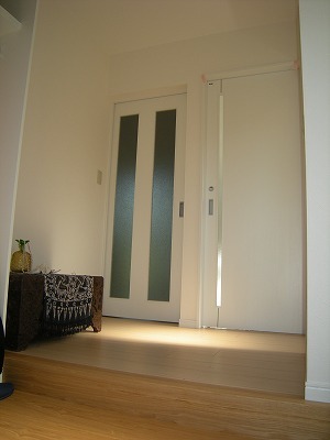 奥には、この冬設置予定の薪ストーブのスペースが。