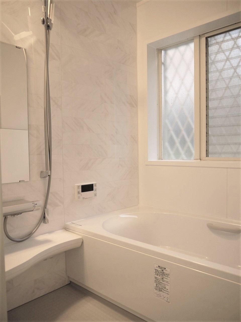 タイル貼りの浴室からユニットバスにリフォーム!これからは足元のヒヤッとした冷たさも解消され、タイル目地のお掃除もラクになりました。