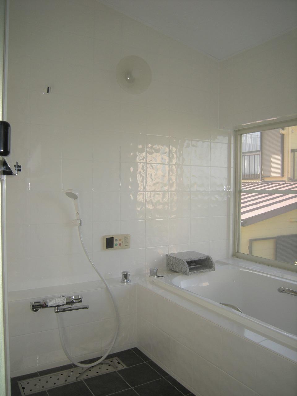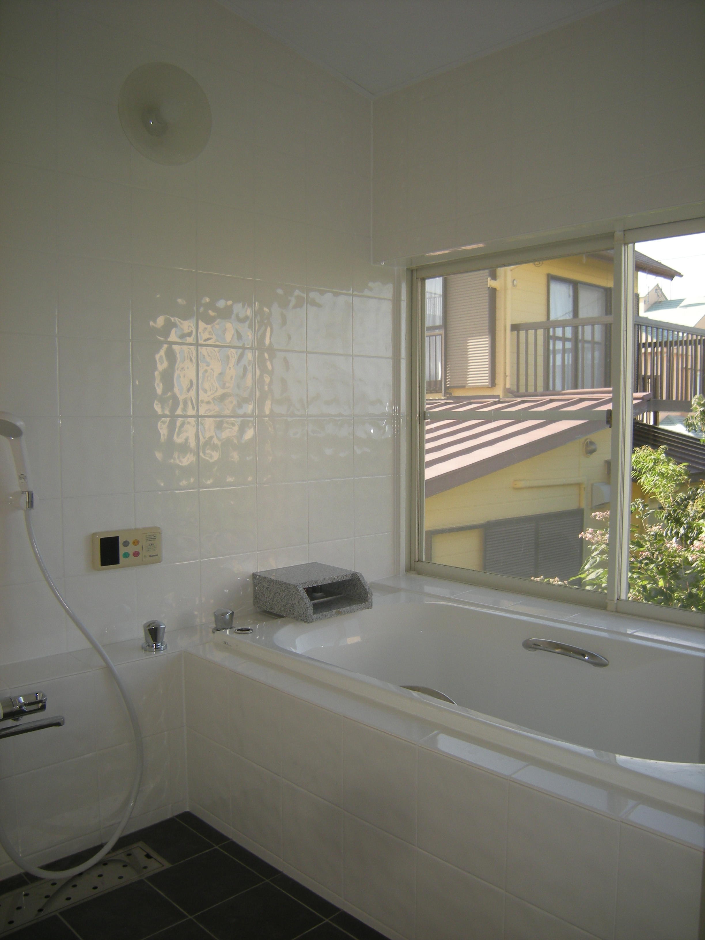 こだわりの浴室。やっぱりタイルのお風呂はステキ!と思わせてくれるK様邸。浴槽もタイルもすべてリクシル製品でコーディネート。