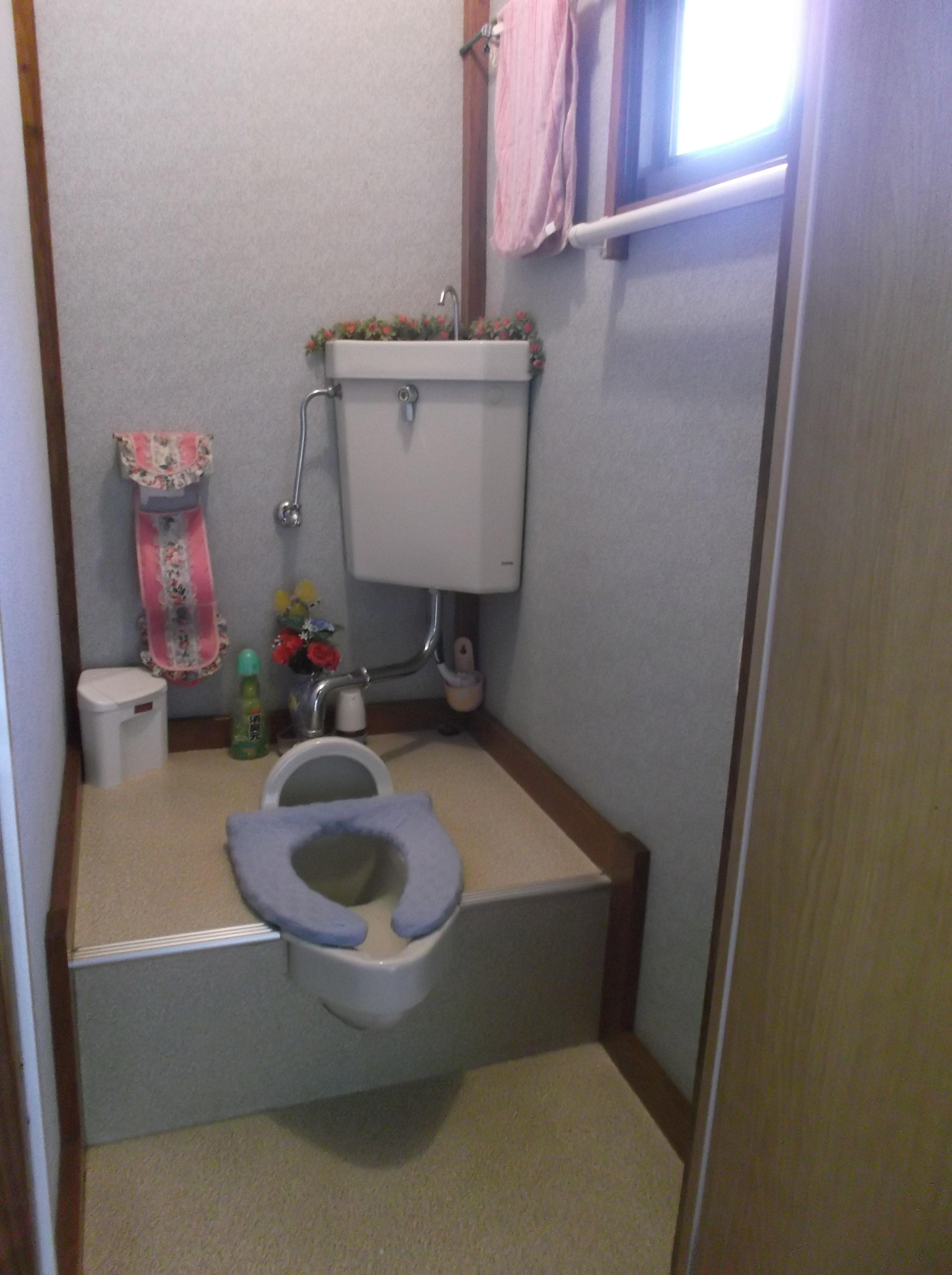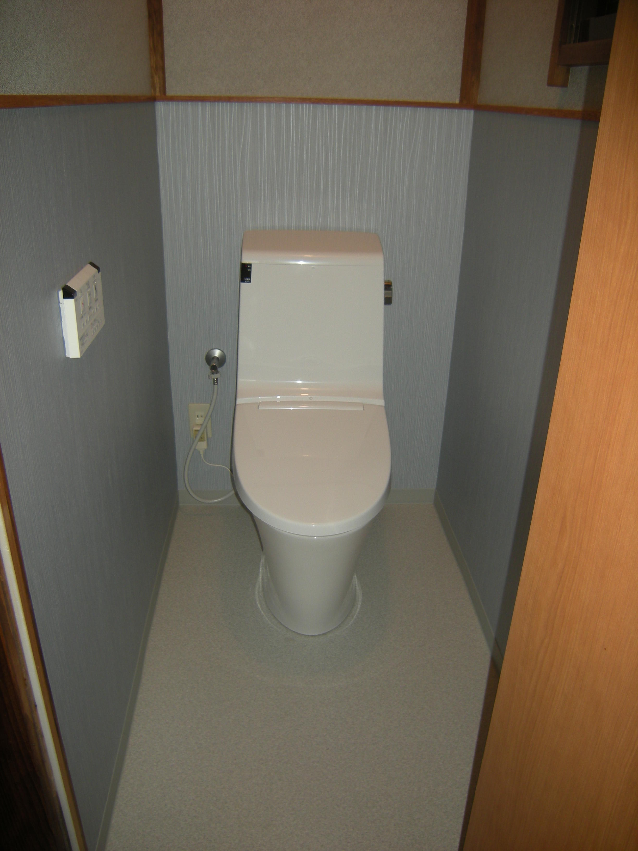 和式から洋式へ。快適になりました。ブルーグレーの壁クロスも落ち着いています。