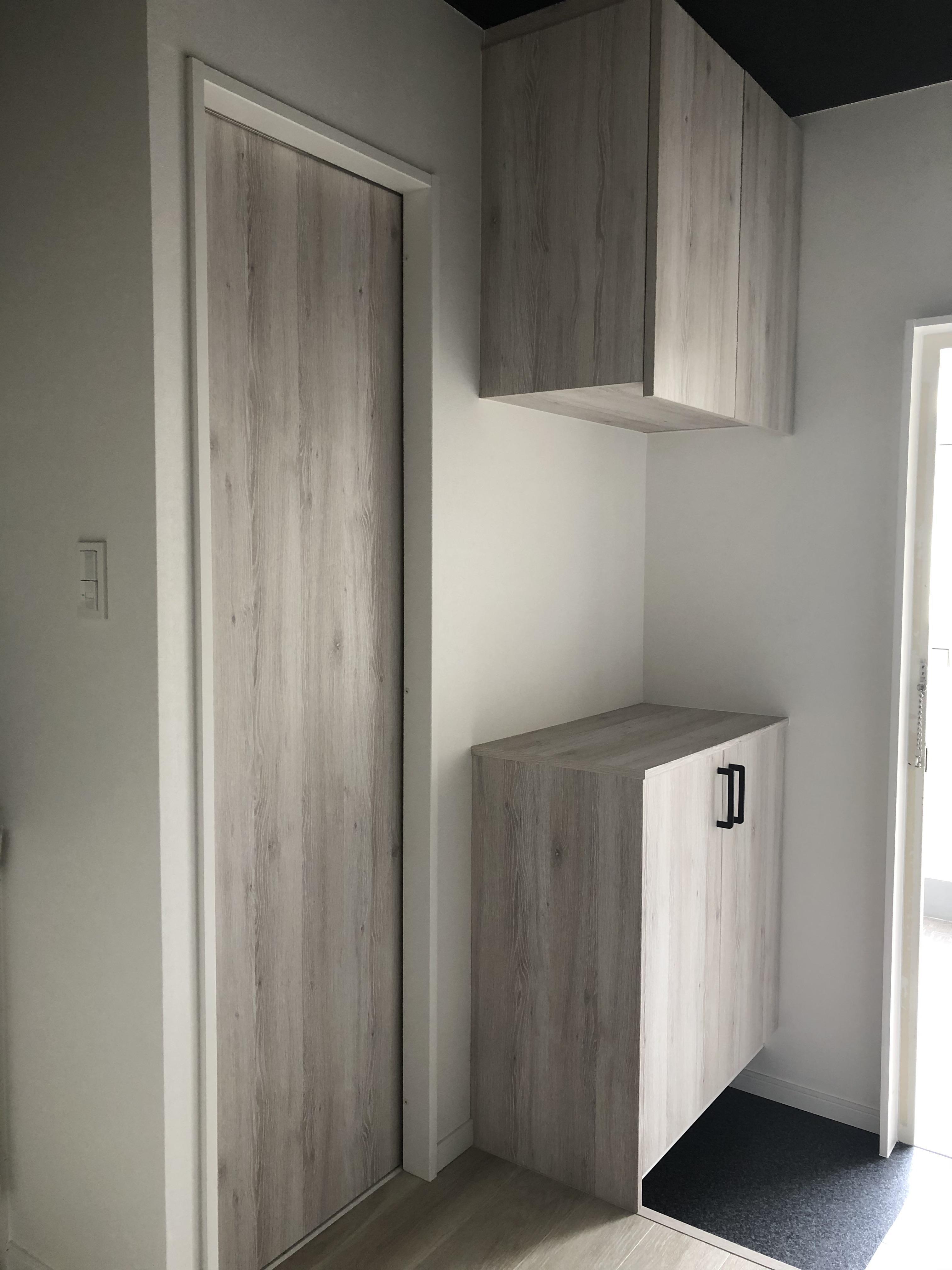 リクシルシステムキッチン・シエラ 収納棚も含め扉カラーはスムースホワイトで統一。