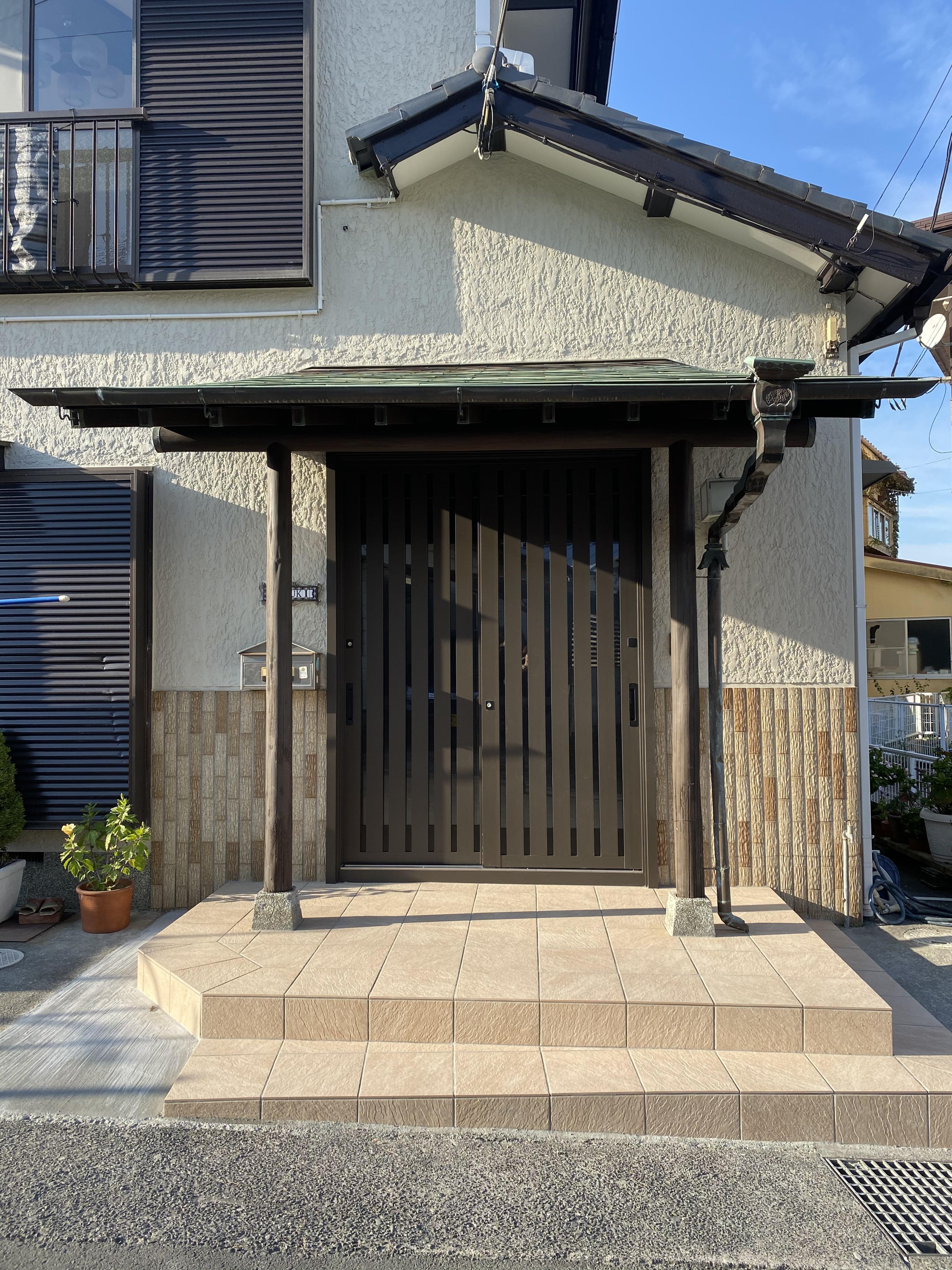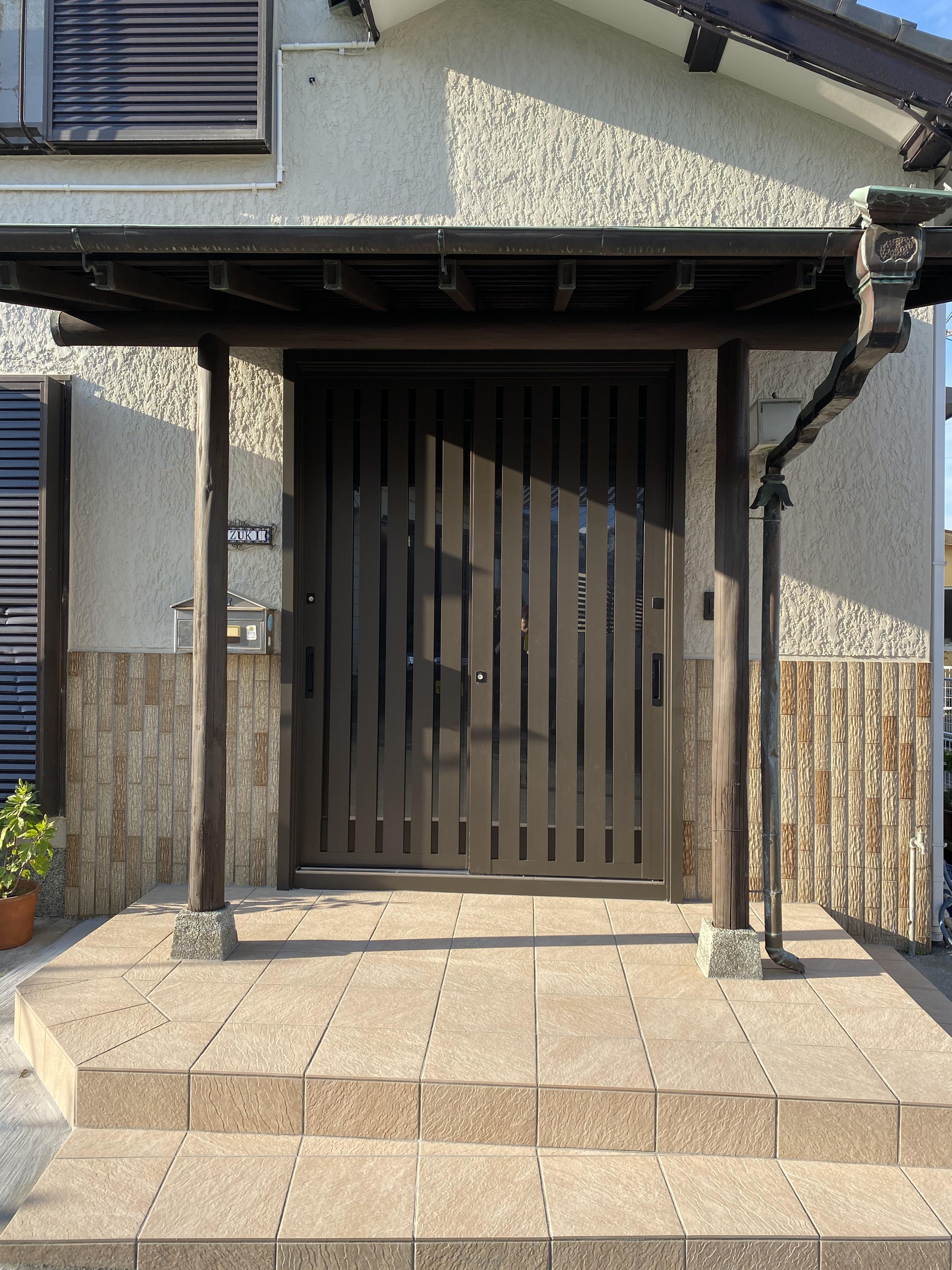 経年劣化した玄関引き戸のリフォームをご依頼のS様邸。リクシル玄関引き戸・リシェントで、お家の顔ともいうべき玄関先が 明るく、高品質に生まれ変わりました。「行ってきます!」から「ただいま!」の間に終わるワンデイリフォームです。