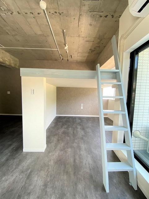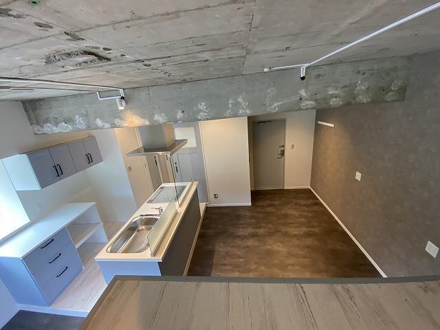 長い間、ご両親がご利用のリゾートマンションを受け継がれたH様。既存は段差があり、使い勝手も悪い。H様のご希望は、「今の生活様式に合った、お洒落で、個性的なお部屋にしたい!」その、ご希望にお応えします!広々としたワンフロアにリノベーション!玄関ドアを開けると、ガラスブロック調のタイルがお出迎え!土足のままお部屋に入ることが出来るように床はあえてクッションフロアをチョイス。見上げる天井は、コンクリートをそのままにして、ヴィンテージ風に。とても印象的で遊び心いっぱいな空間になりました。