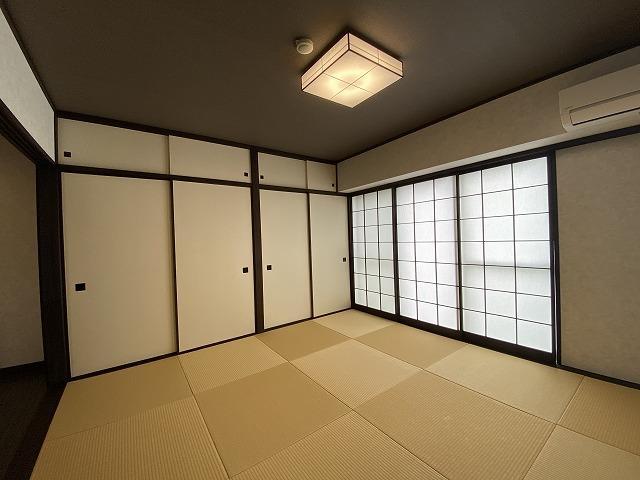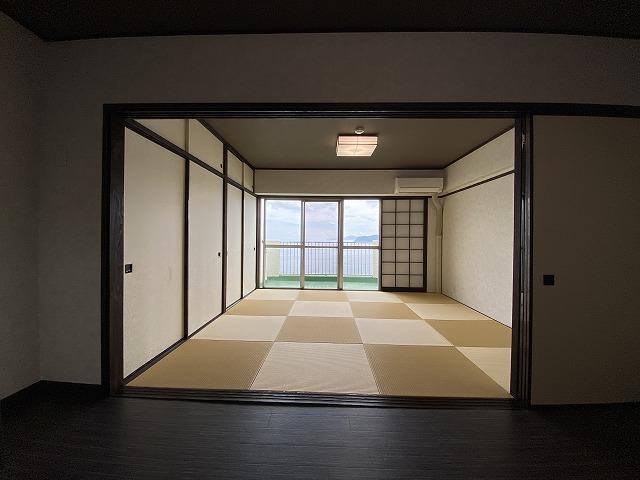 天井と襖をクロス仕上げにして、スッキリとシンプルに。黄金色の半畳たたみが美しい和室。都会の喧騒から逃れて週末大浴場で温泉に入ってゴロンと・・・至福のひとときを体感していただきます。