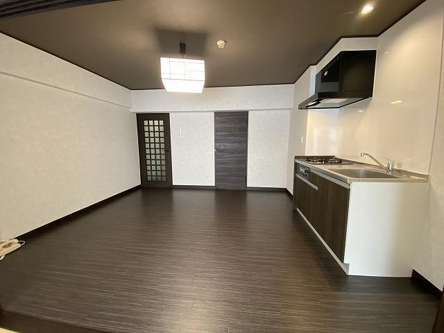 汚れたらサッとふけるお手入れ簡単なクッションフロア。古民家風の雰囲気をこわさないドアと引き戸はリクシル建材。キュッと全体をしまります。