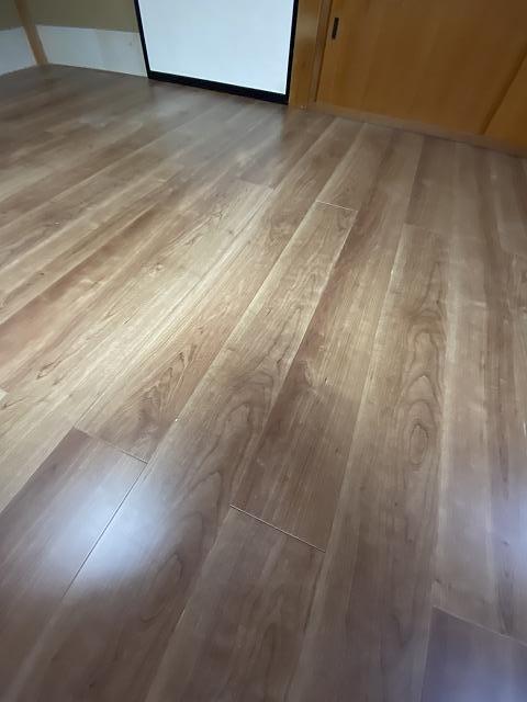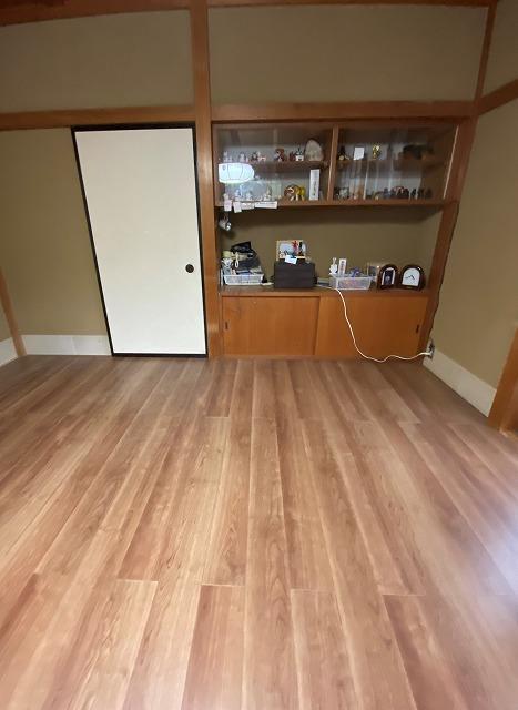 古民家風の戸建にお住いのS様邸。今回のご依頼は、S様ご夫妻のこれからのライフスタイルを考えて和室の床を畳からフローリングにリフォーム!ハウスダストも予防できて愛犬モモちゃんも安心です。
