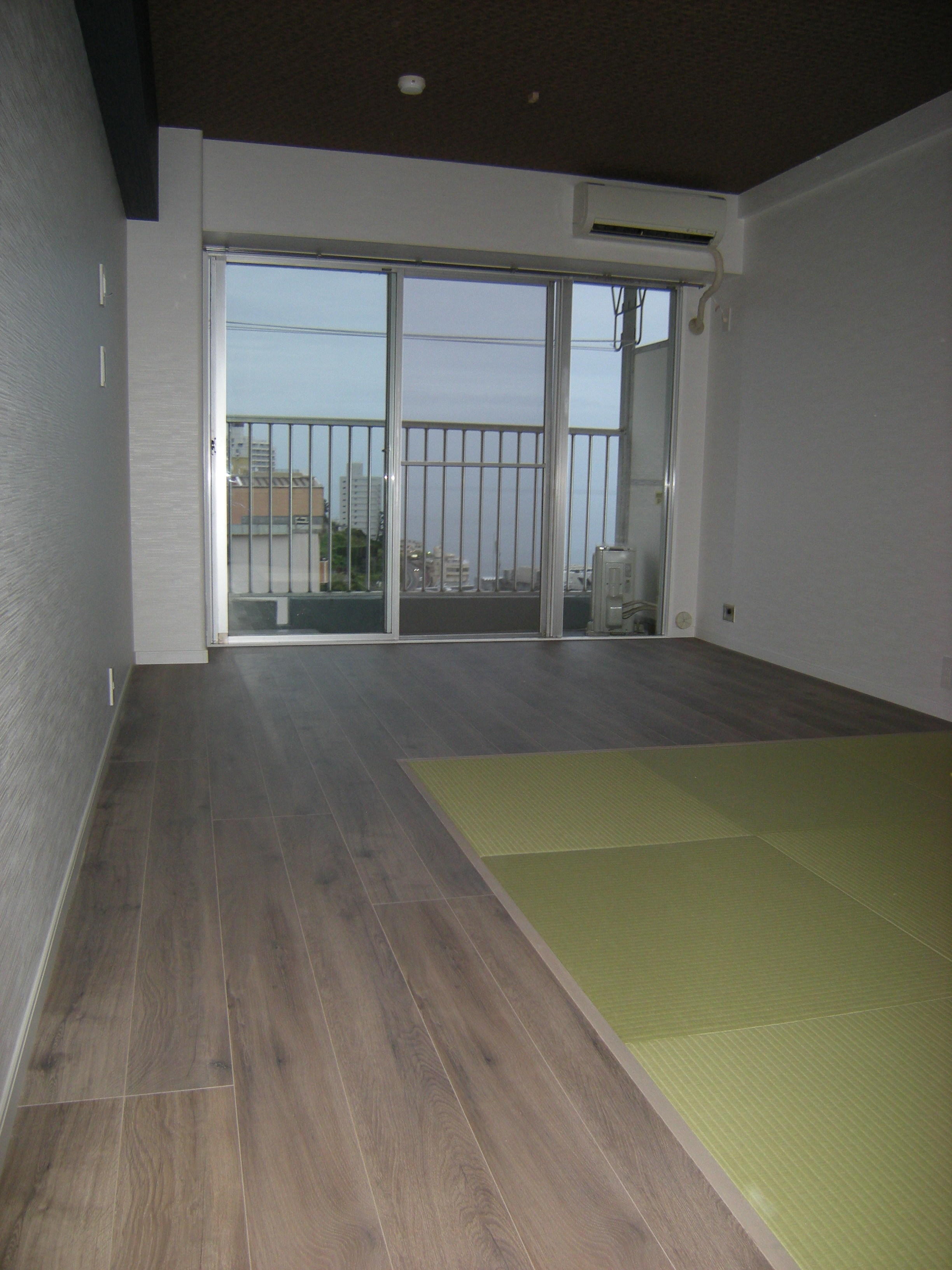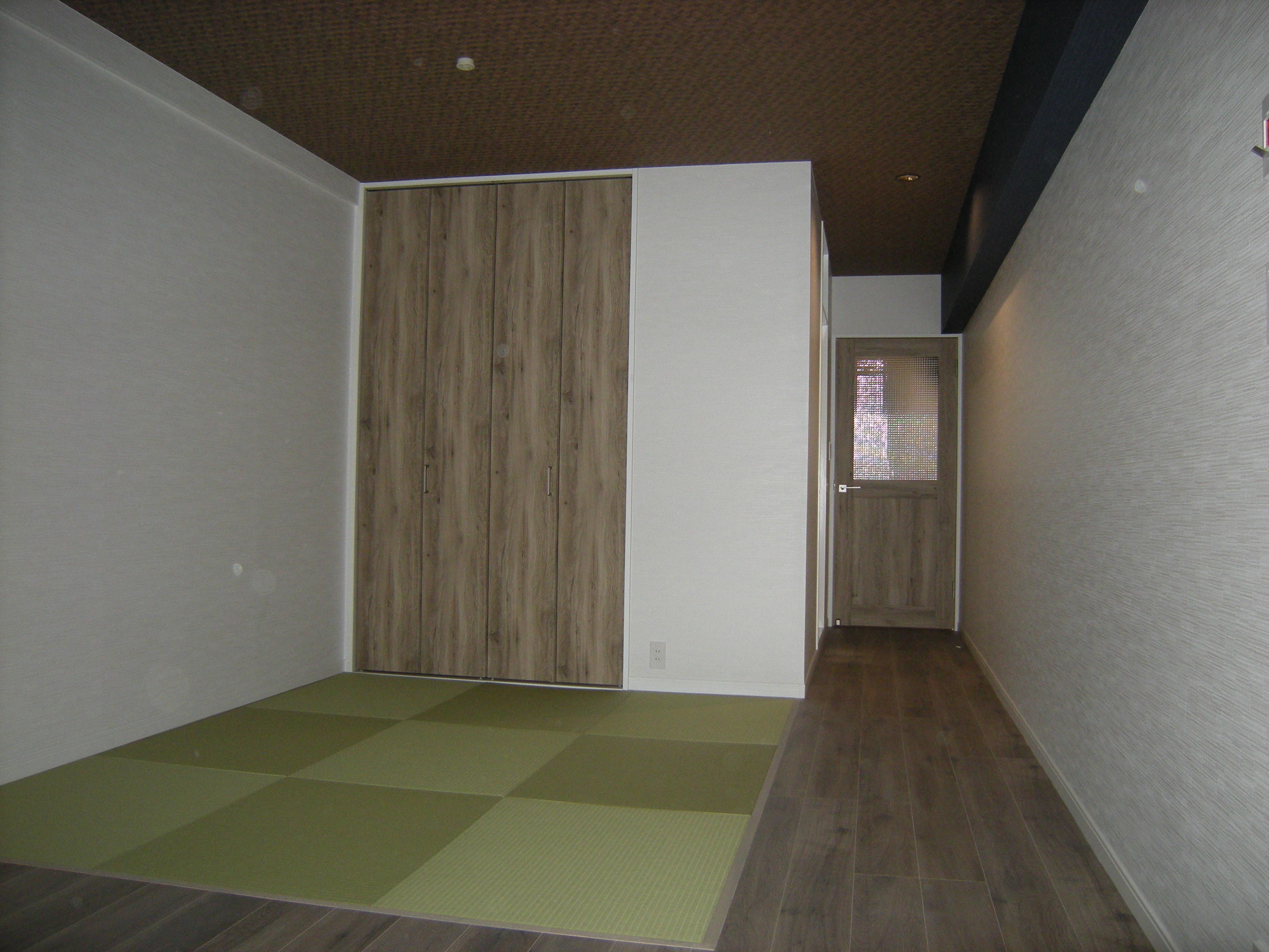 既存の廊下と和室の間仕切りの壁を撤去して、ヘリ無し半畳たたみを置き和室の趣きを残しつつバリアフリー化にしてゆったりとお過ごしできるように生まれ変わりました。それにしても、窓の外の眺望が素敵。
