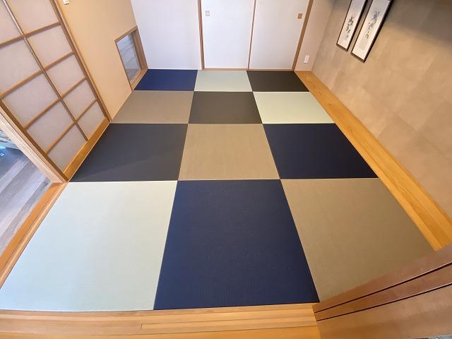 藍色・青磁色・銀鼠色・墨染色の配列は奥様の遊び心。リゾートで叶う遊び心。