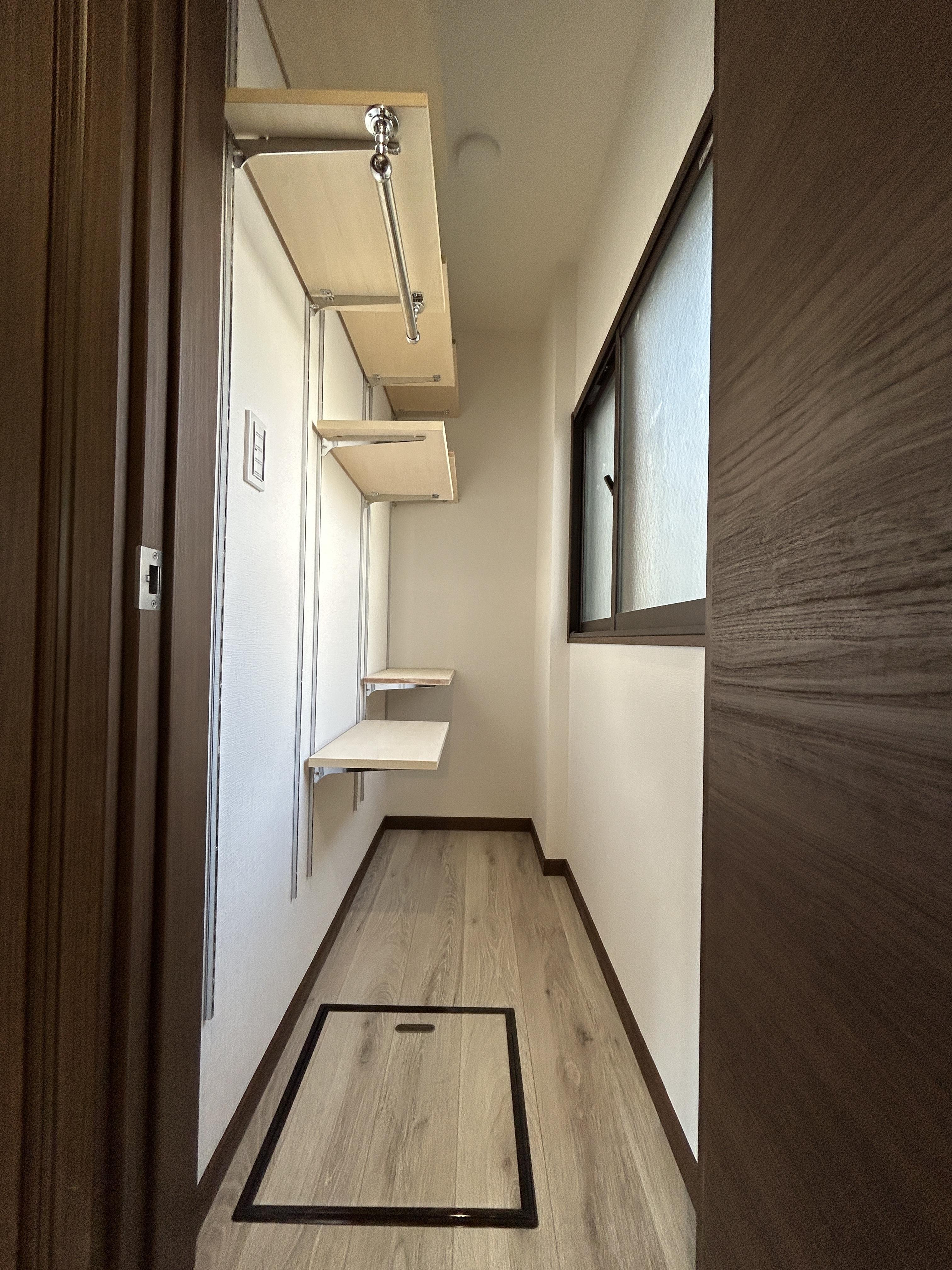 キッチンに入るためだけのスペースだった廊下の突き当りの空間を、ちょっとした収納庫に。ホームウェル熱海の女性ならではのご提案!まるでクロークインのような素敵な仕上がりになりました!