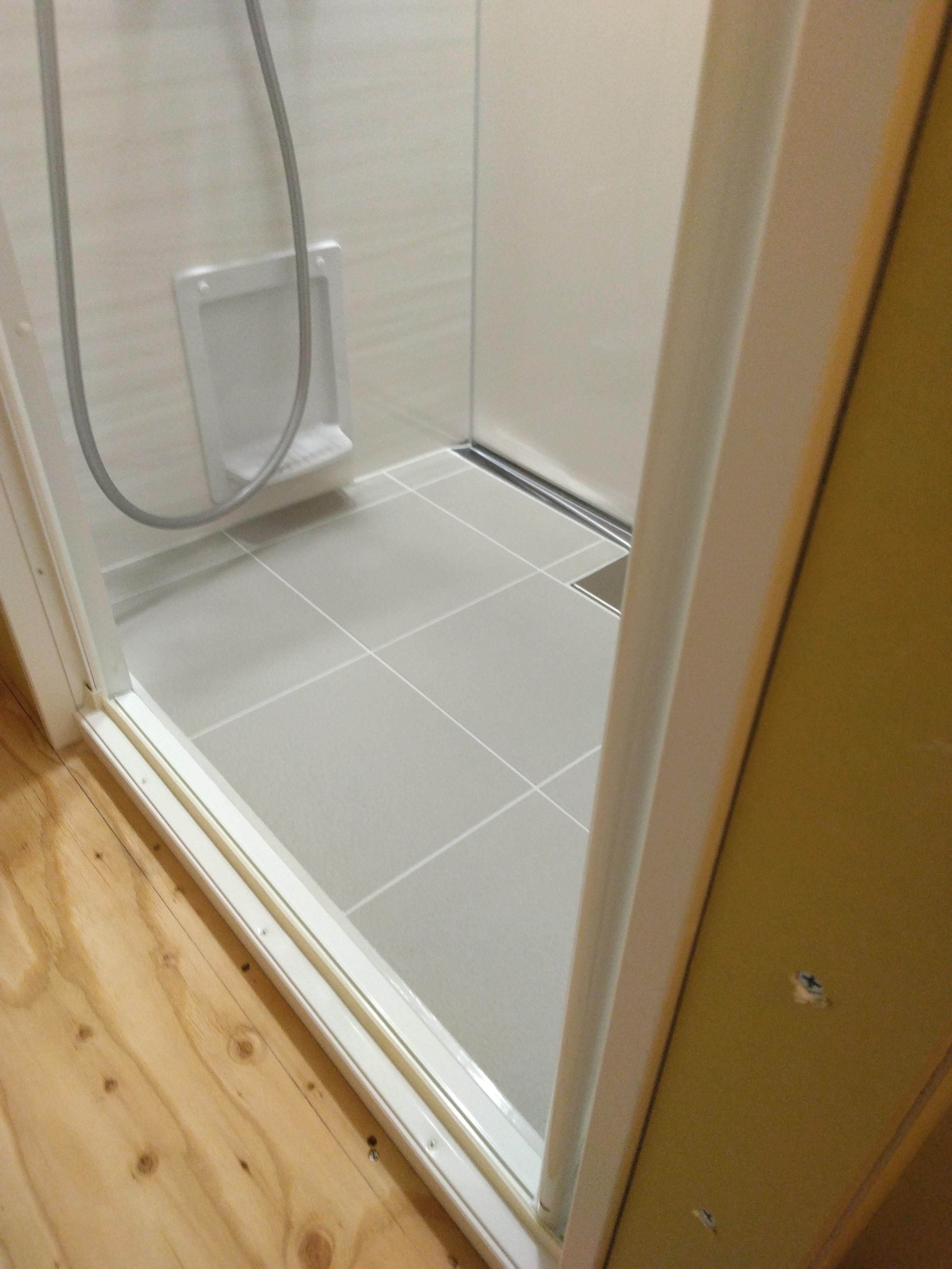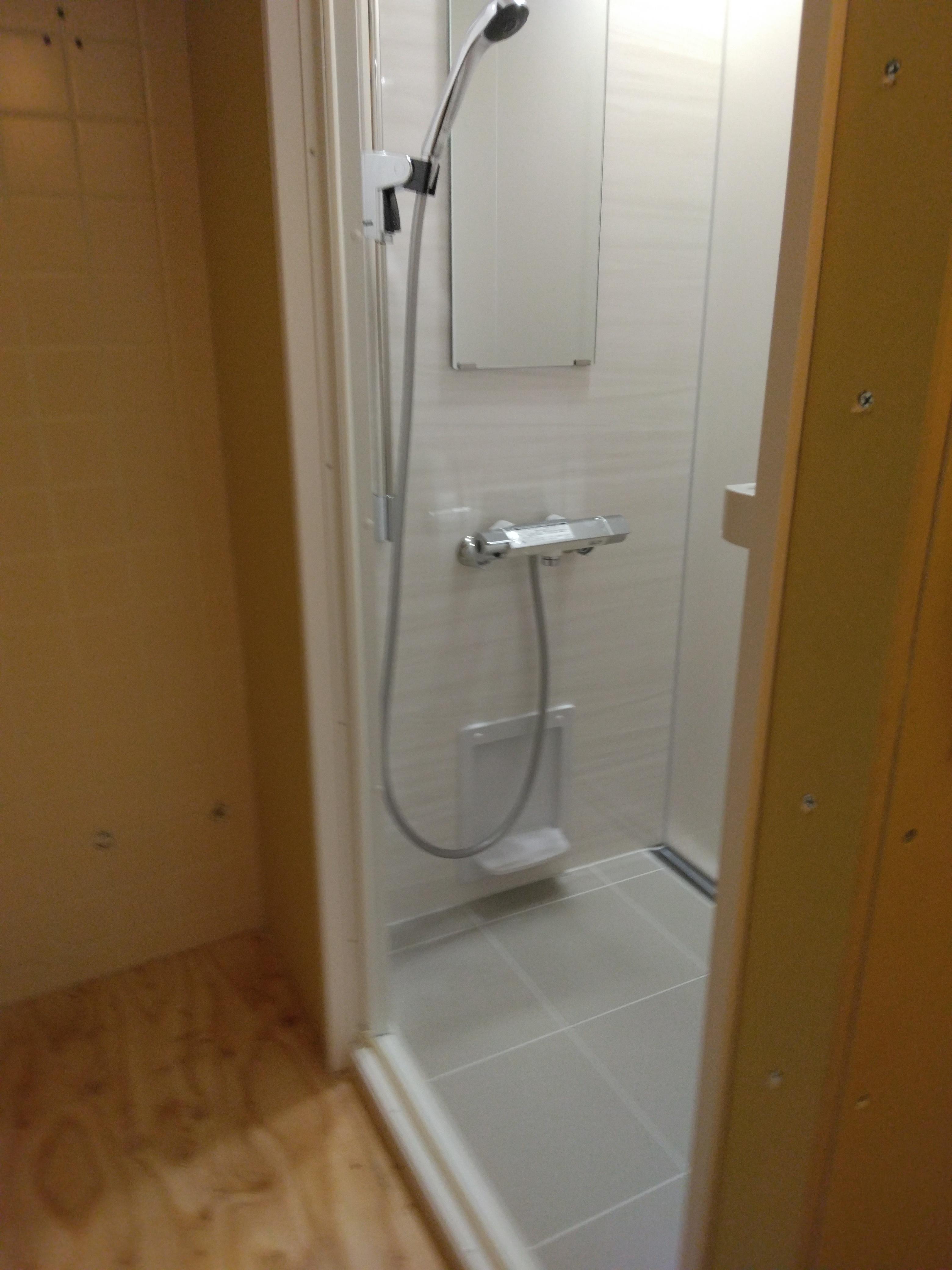 大浴場完備のリゾートマンションにお住いのO様邸のご依頼は、浴室をシャワーユニットにリフォーム!ウオーキングや外出の後に手軽にお使いいただけます。コンパクトで清潔感のあるシャワーユニット。年に何回か実施される大浴場のメンテナンスでご利用できない時もシャワーがあれば安心です!
