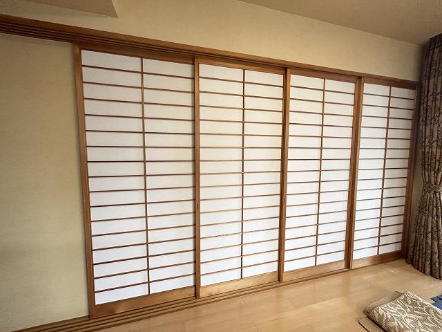 リモートワークが叶う昨今、風光明媚な熱海に暮らしながら仕事をする・・・S様ご夫婦も同様で熱海に・・・。 畳を撤去してフローリングに。エンボスでより、リアルな足触り。 リビングとの境だった障子を4枚引きの建具に造り替えで洋室の雰囲気に統一。更に、お互いのリモートのスペースを間仕きれるので仕事の効率化もアップです!