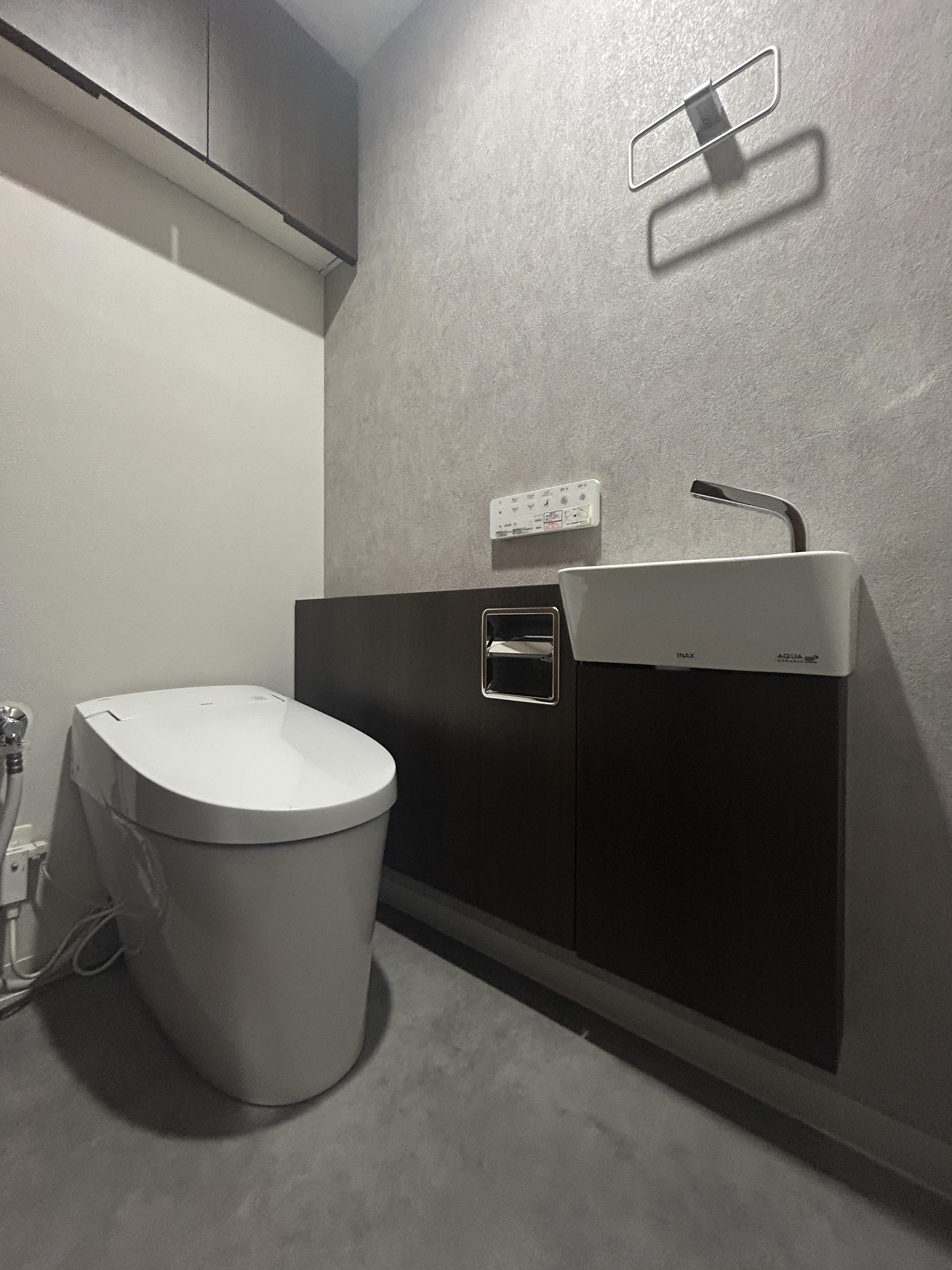 リクシルタンクレストイレ・サティスとスリムな手洗器でゆったりスペースになりました。