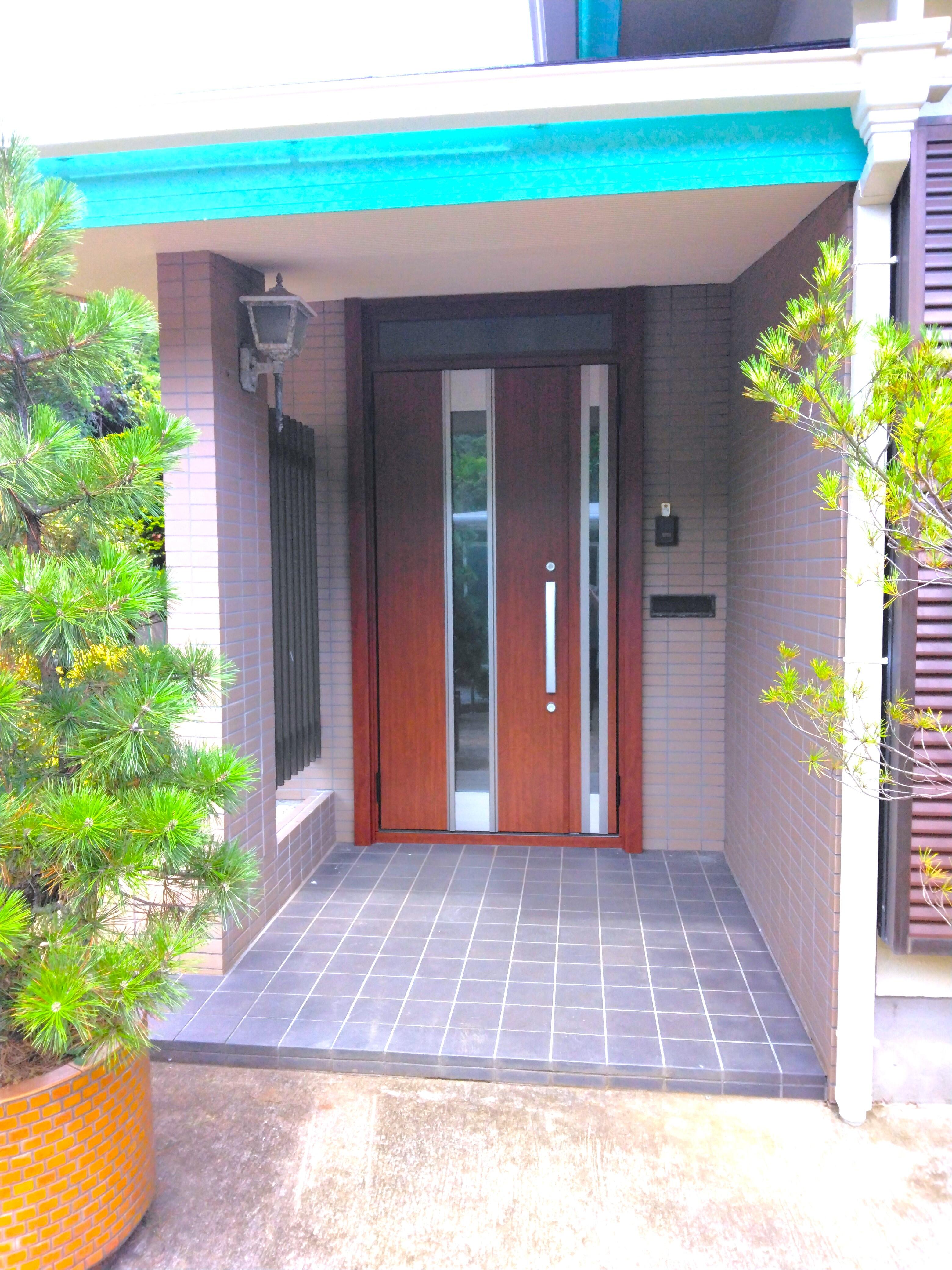 K様邸のリフレッシュは高台にある平屋の別荘でガーデニングや眺望を楽しむことです。しかし、最近は屋根、外壁を含む 外部全般の経年劣化が気になります。玄関ドアも経年劣化による腐食。 外部塗装工事と玄関ドアのリフォームのご依頼です! リクシル・リフォーム用玄関ドア・リシェントで引き締まります。