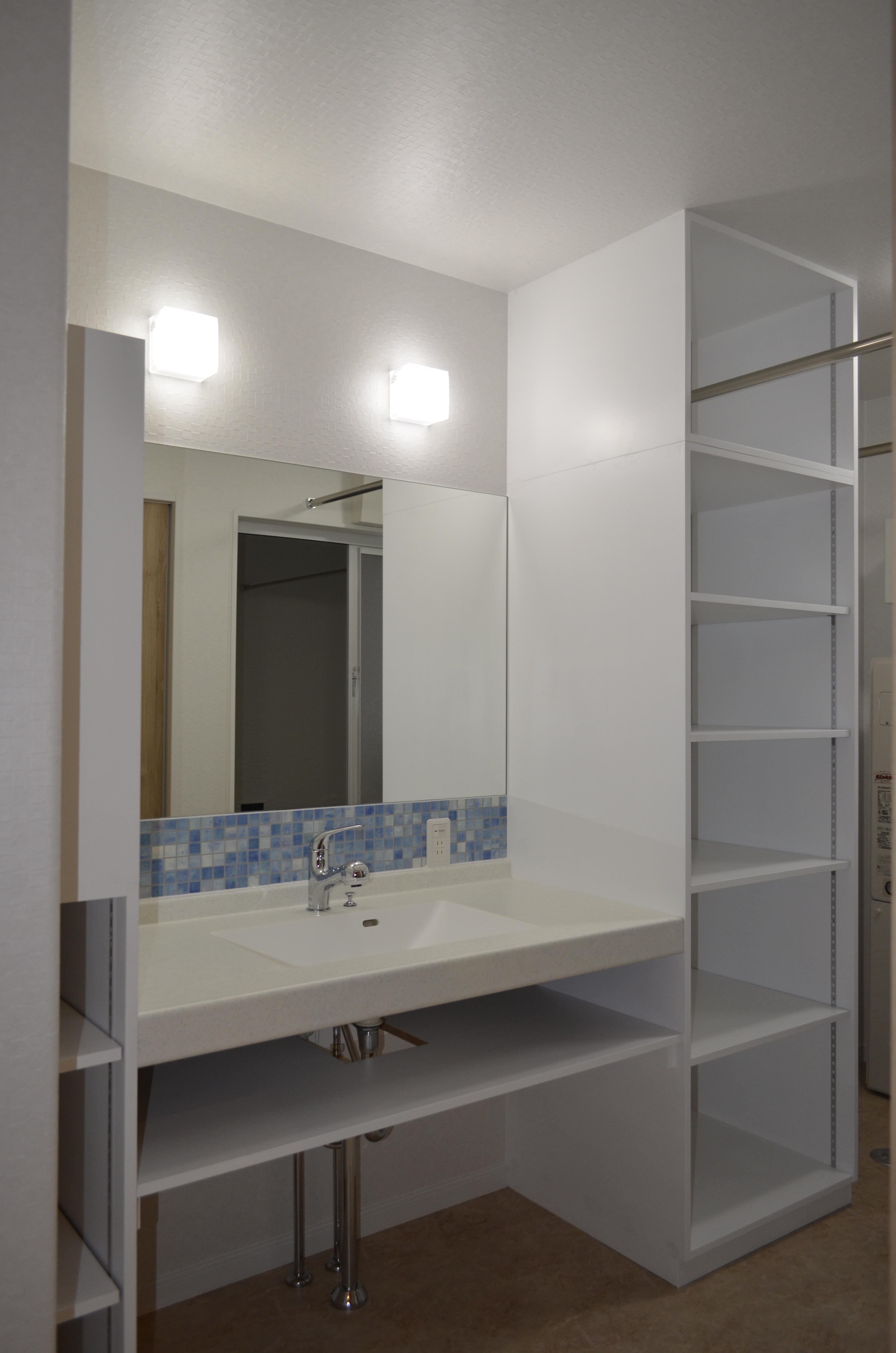 広い洗面で朝のバタバタを解消!
