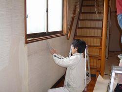 古くなった廊下のクロスを職人さんが丁寧に剥がし、張替えて明るく開放感のある廊下になりました。