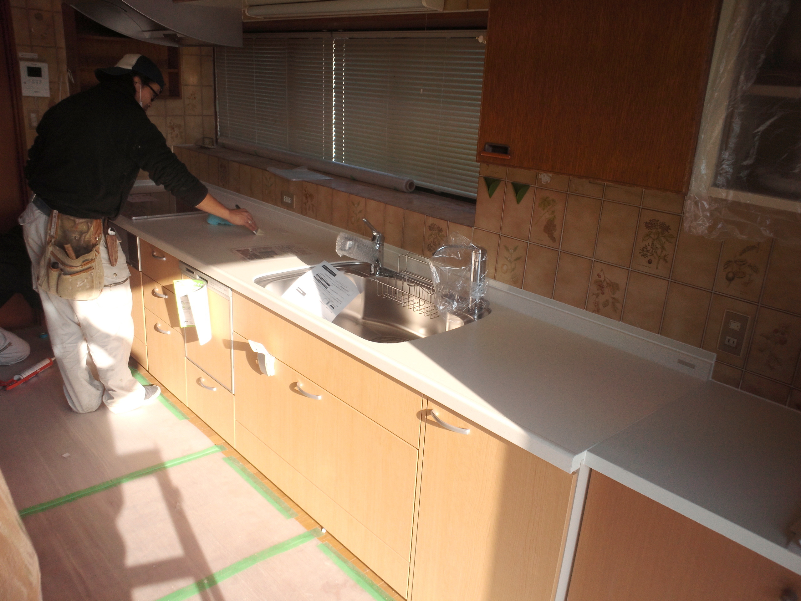 今まで洗面所にはファンヒーターを置いていたそうですが、壁付暖房を取り付けたことにより脱衣スペースが広くなりとても使いやすくなったと喜ばれています。 また、キッチンの食器洗い機もビルトインしたことで、こちらもすっきりして使いやすいととても好評でした。