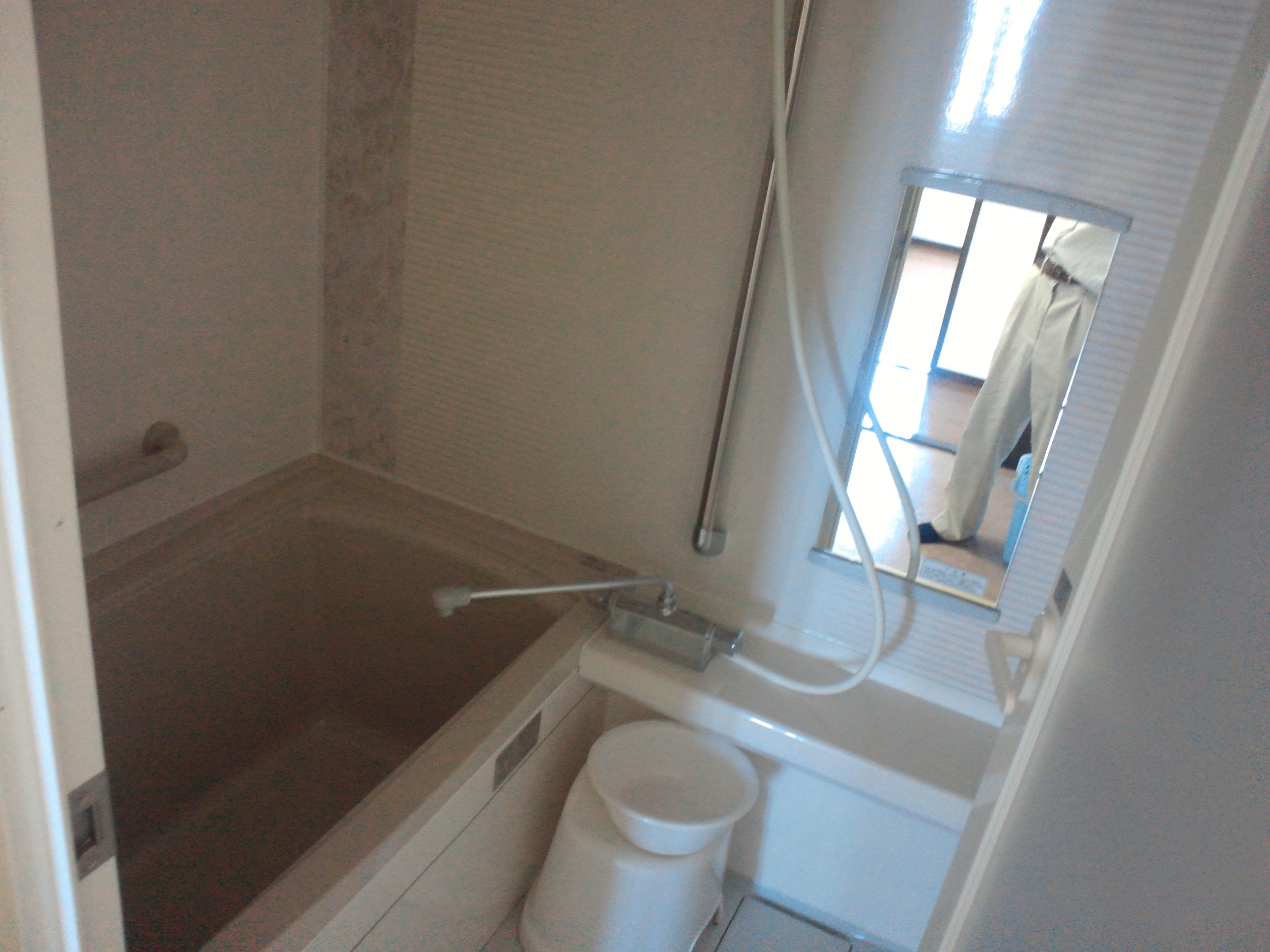 タイル貼りだった壁と床の浴室は、ベージュカラーのシステムバスに変更したことにより全体が明るくなりました。壁も傷つきにくく汚れにくいのでお手入れがとっても簡単です!