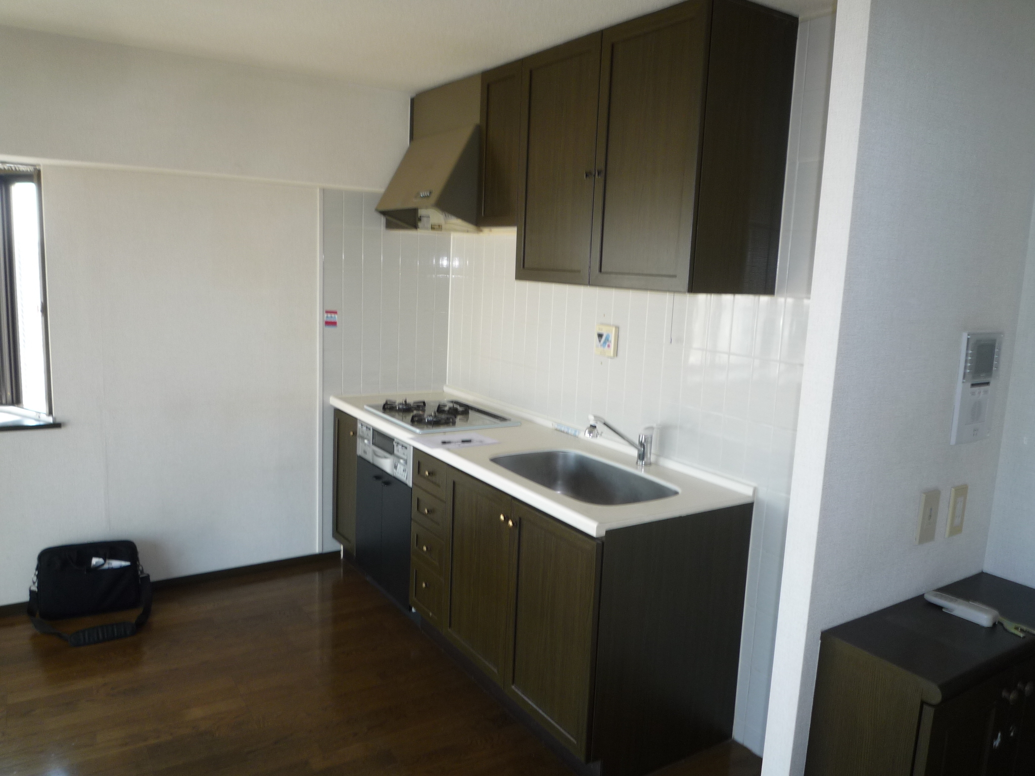 ダークブラウンからやさしいピンクのシステムキッチンに変更。ダイニングキッチン全体が明るく広く感じられます。またタイル貼りだった壁面はお掃除しやすいパネルに変更しました。吊戸棚下の手の届きやすい場所には細々した物を収納できるラックを取り付けました。