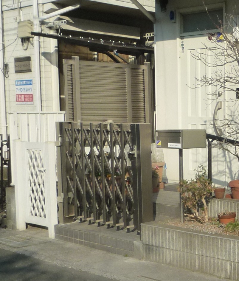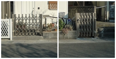 2ヶ所に伸縮門扉をとりつけました。玄関側は階段状になっているので、足元が気にならないノンレール・ノンキャスタータイプのアルシャインHGを選びました。