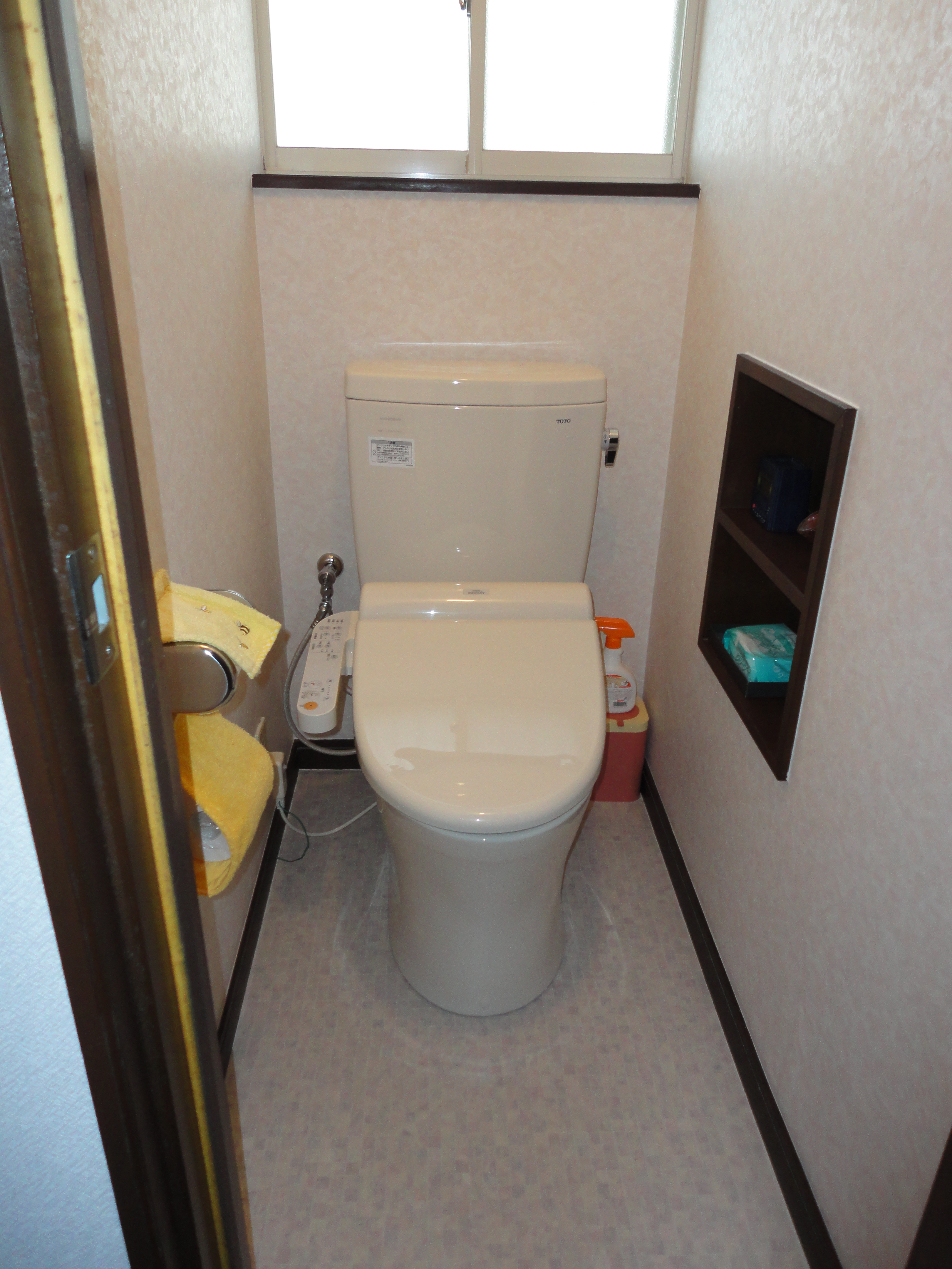 白を基調に設備・壁・床をリフォームしました。 明るく、清潔感のあるトイレに生まれ変わりました。