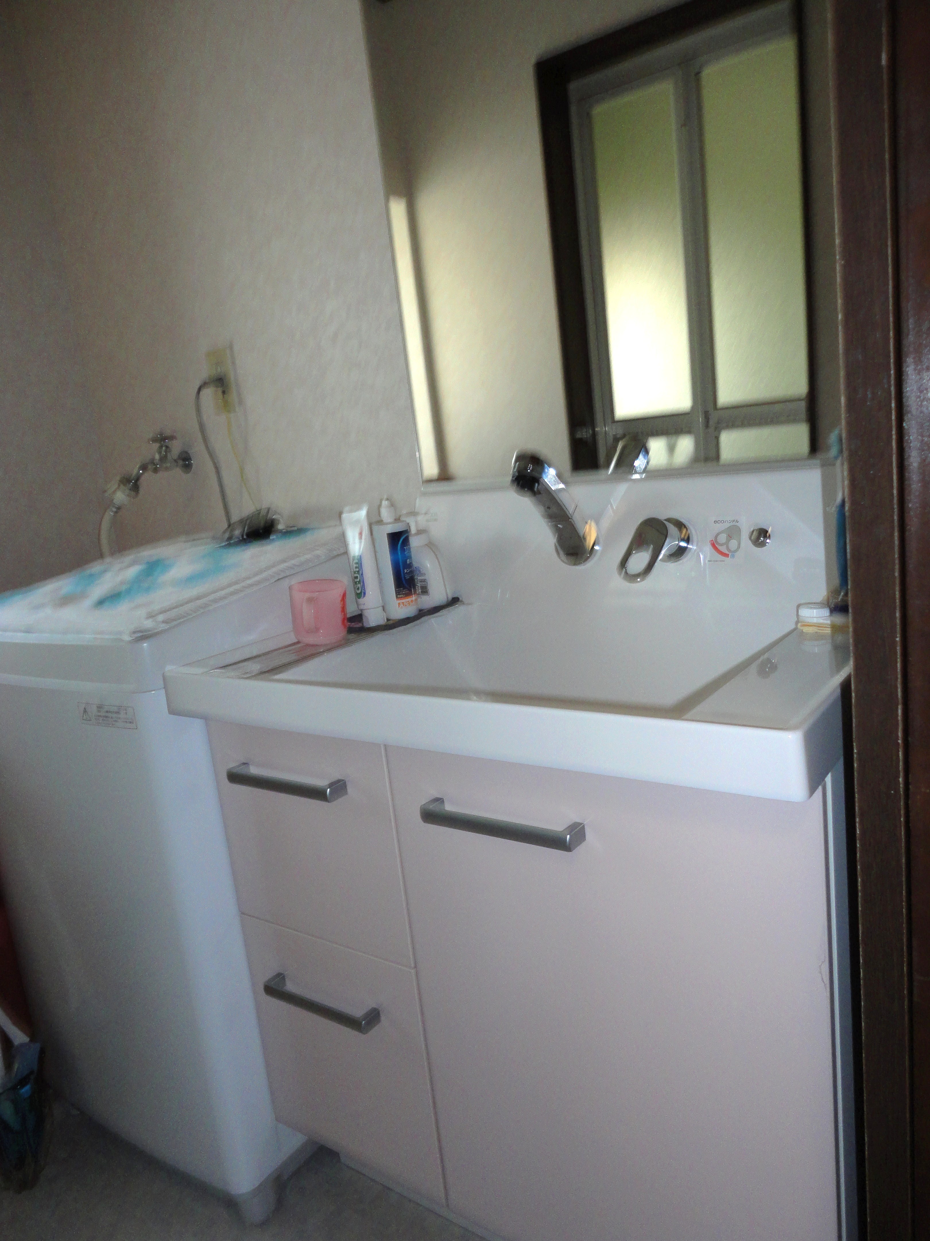 こちらも新しい洗面化粧台に替え壁紙も張り替えたので、洗面所全体が明るくなりました。