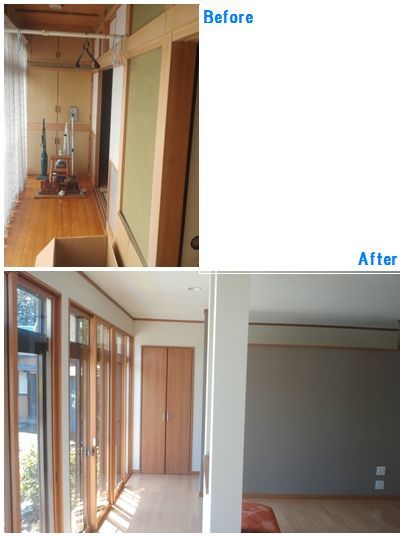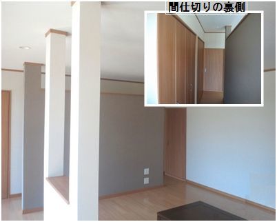 また床の間だった所は全面クローゼットにして、グレーの間仕切りで見えないようにしました。