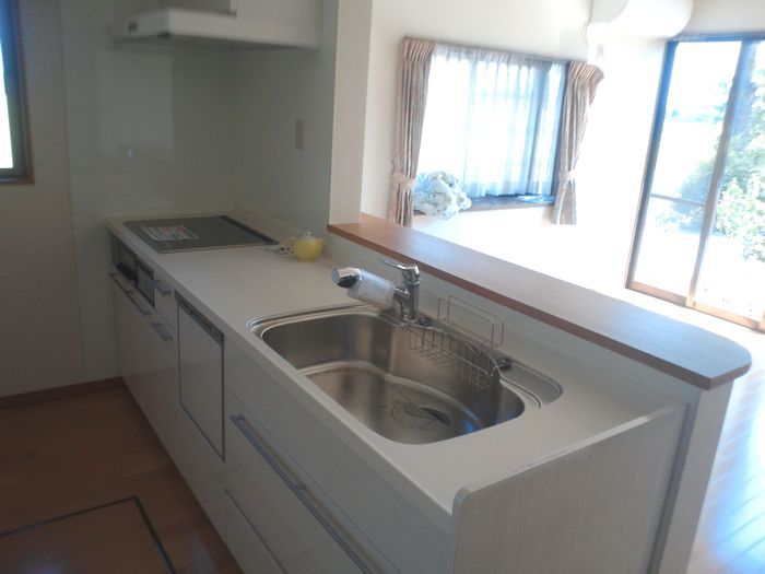 壁付けだったキッチンは奥様ご希望の対面式に変更しました。