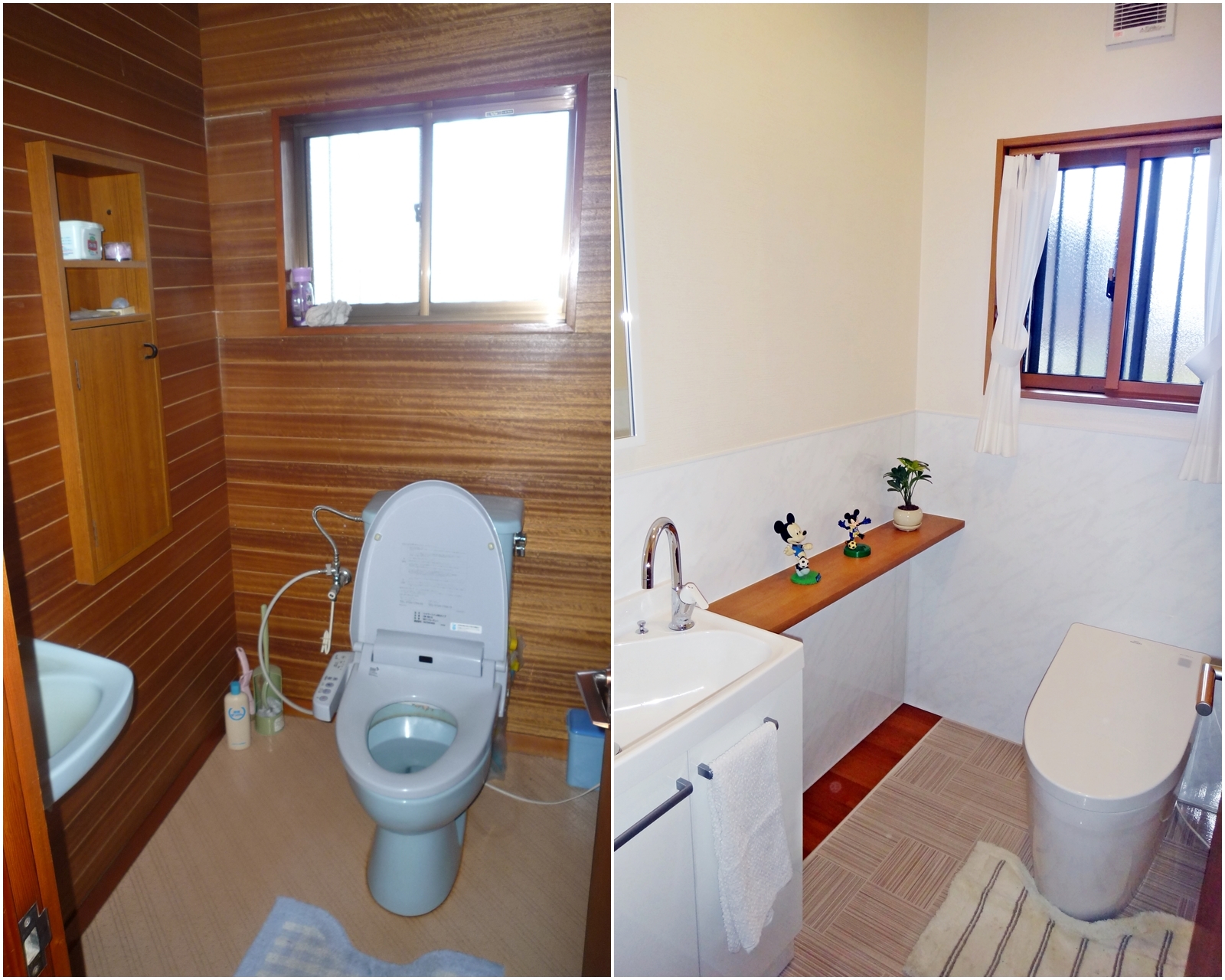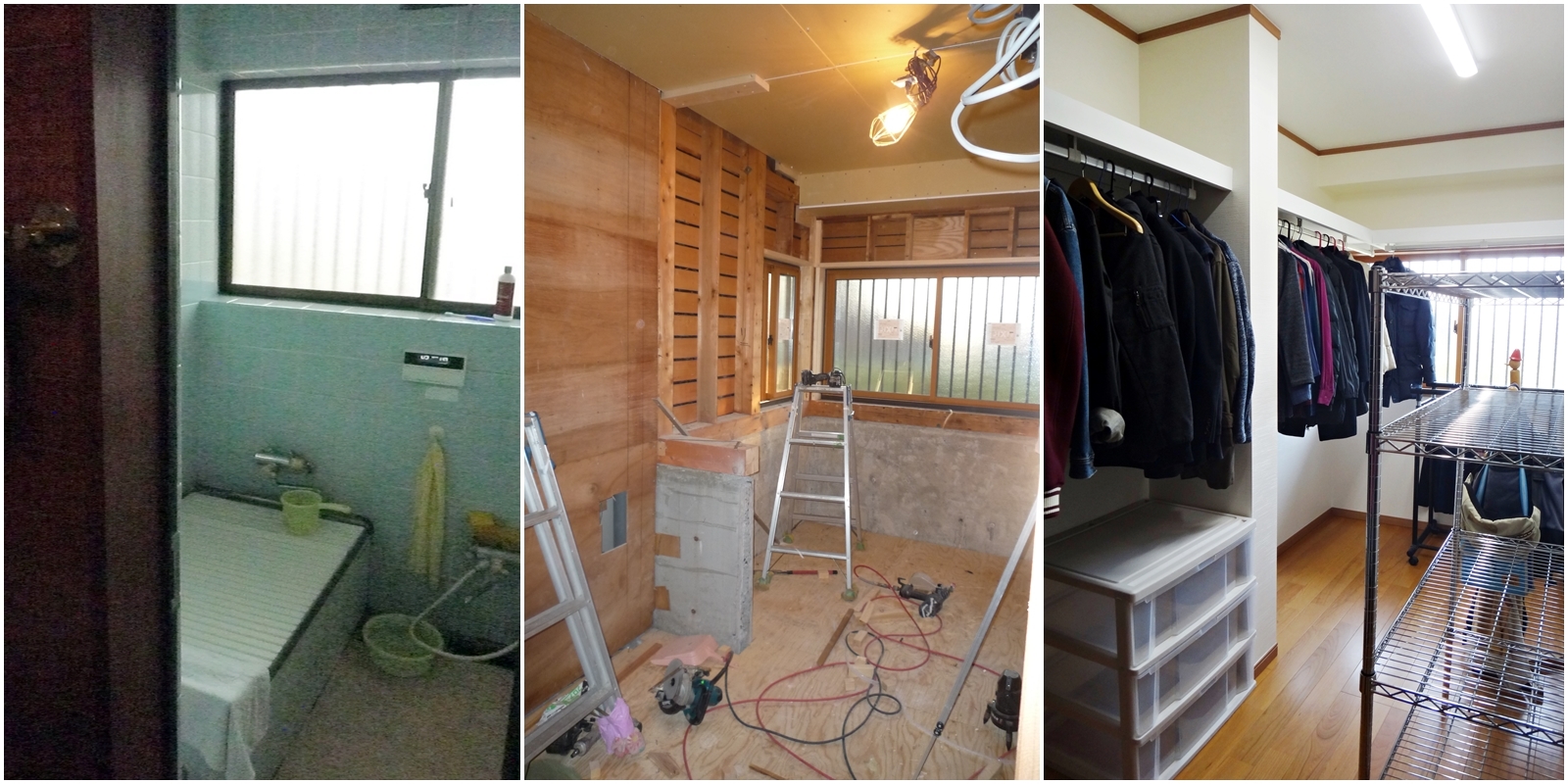 水回りの設備機器に不具合が目立ってきたのを機にリフォームをすることになりました。 風呂/洗面を大幅に間取り変更。家の北側に新しくお風呂/洗面を設置し、既存のお風呂/洗面の場所にはウォークインクローゼットとしました。