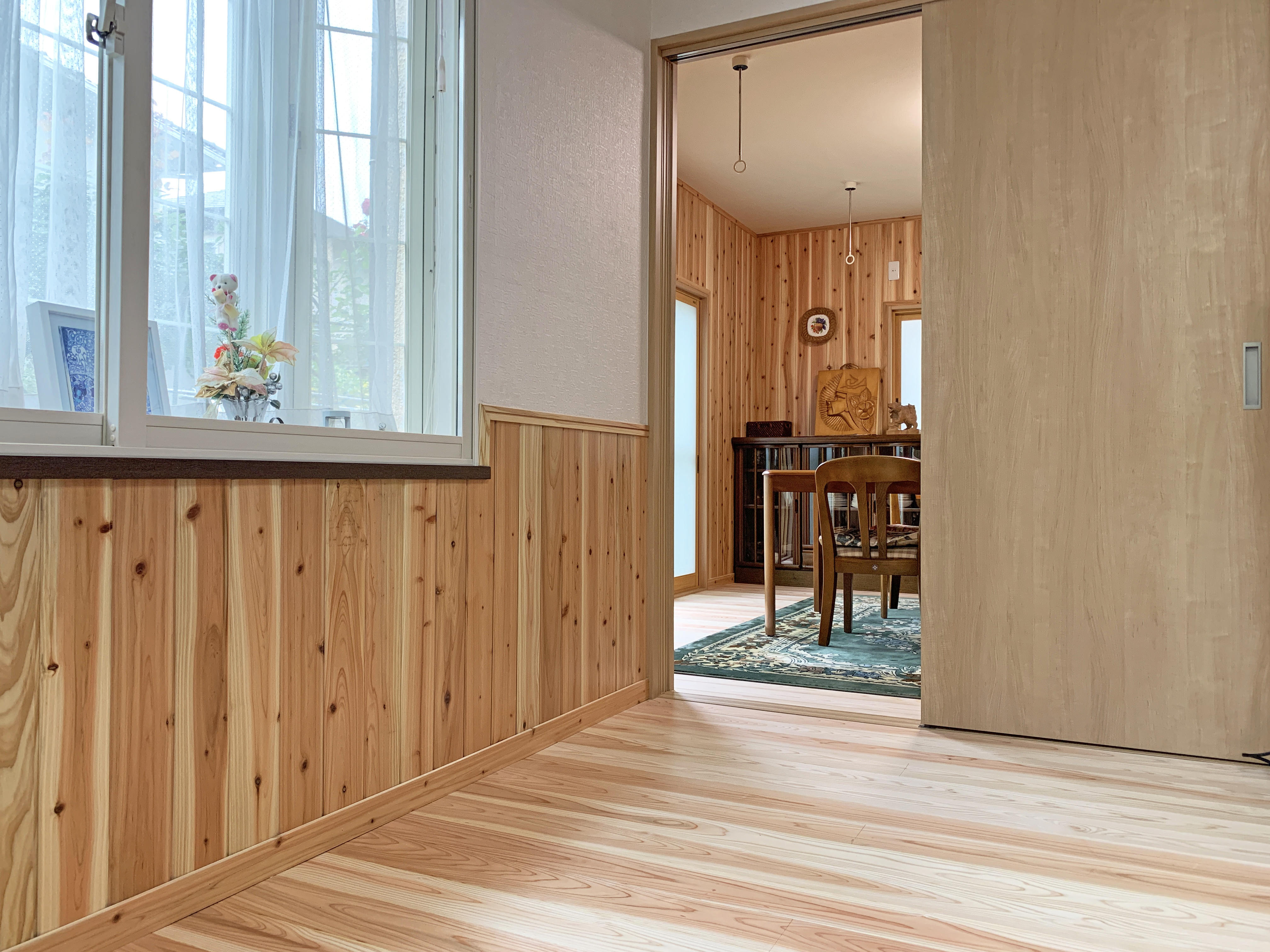 暗かった寝室は、木のにおいのする暖かいリビングに生まれ変わりました。