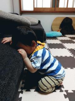 母がバテだしたその脇でうちの息子は元気いっぱいでつかまり立ちの練習をしていて、雄叫びをあげていたのですが、急にその体勢のまま寝てしまいました。