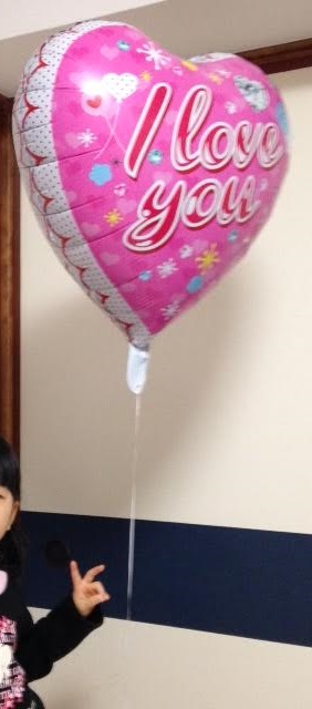 終業式の日に、サンタが一足早く来てくれたそうで風船をプレゼントしてもらったようです。