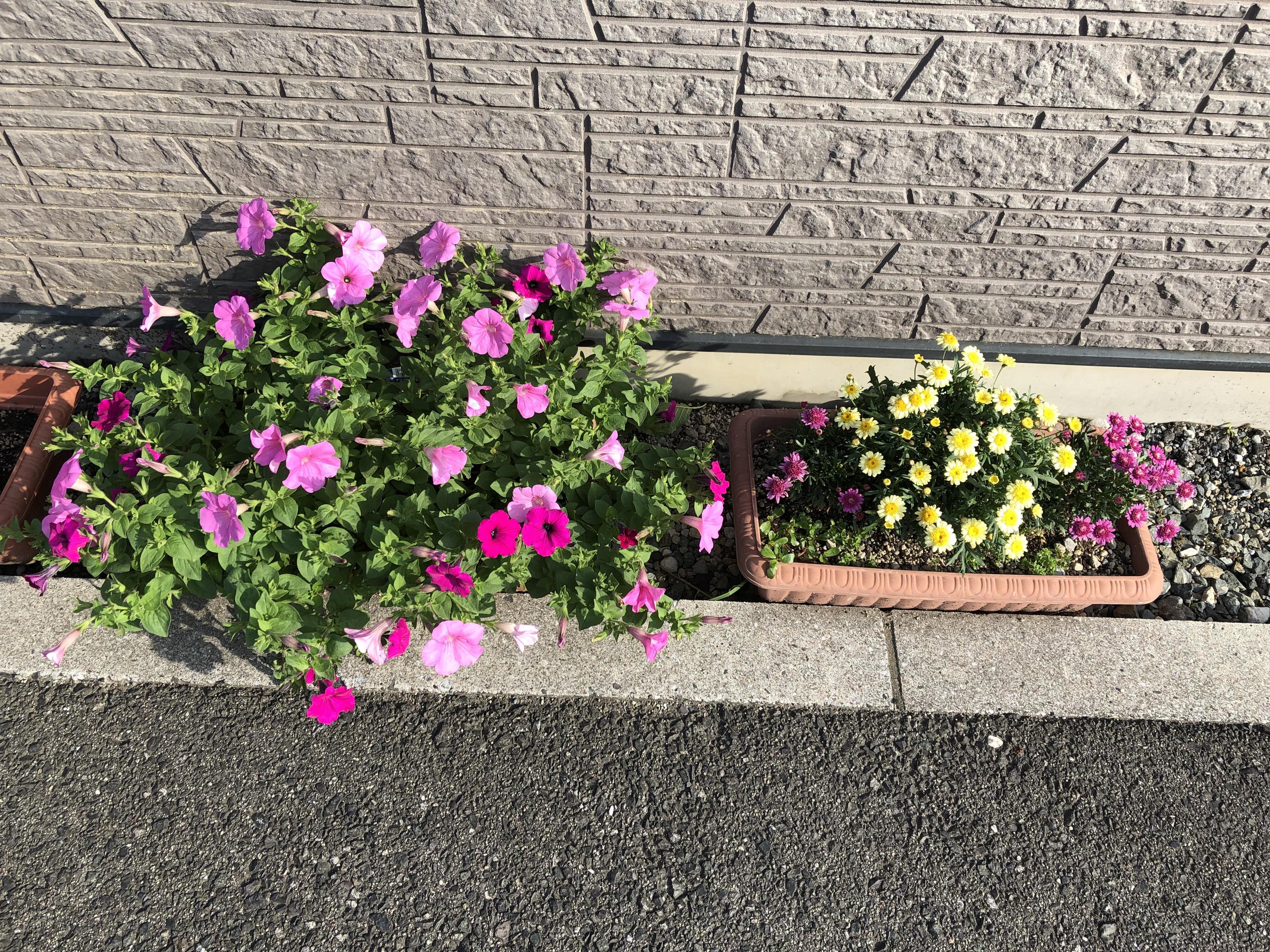 最近社長が会社の入口にあるプランターのお花のお世話を頑張ってしています。