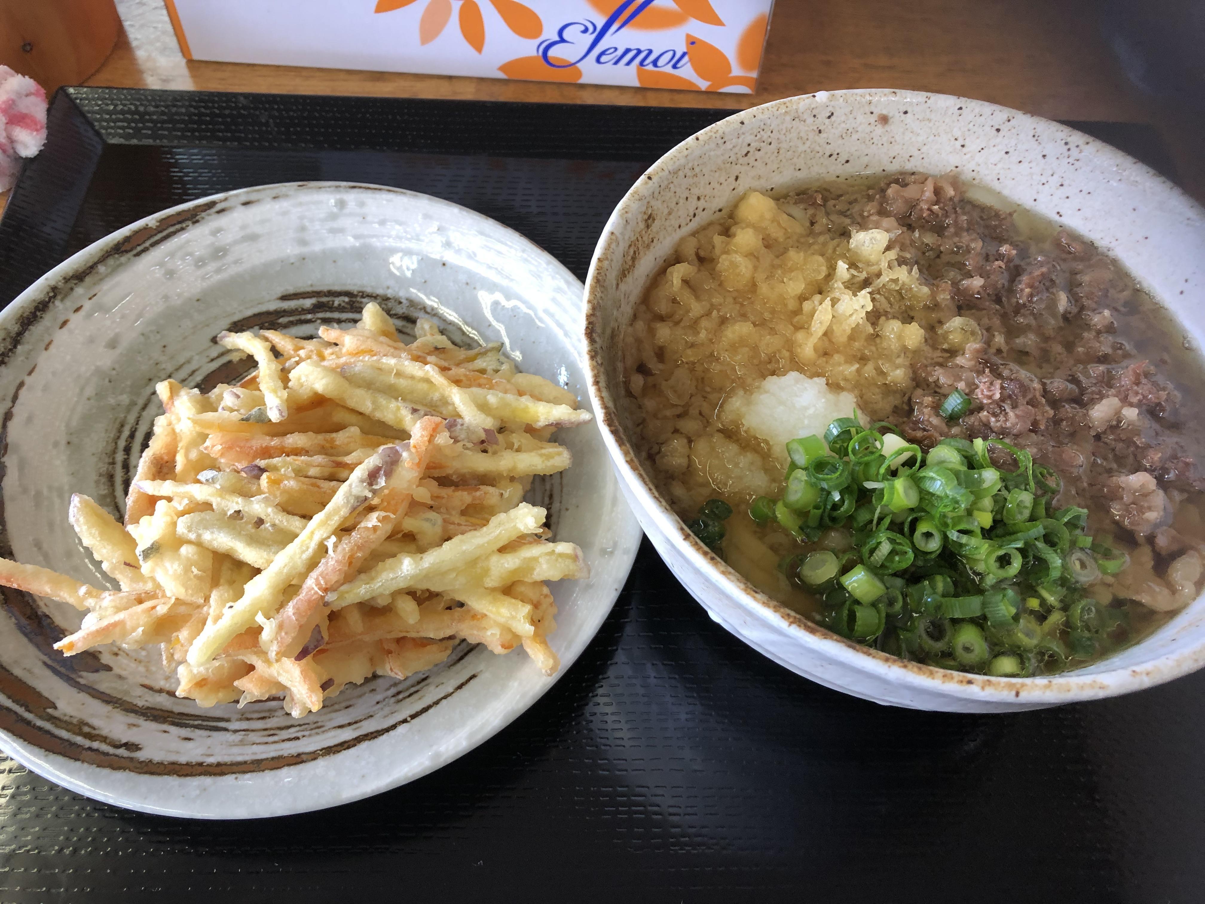 私はどこへ行っても「肉ごぼう天うどん」を食べます。