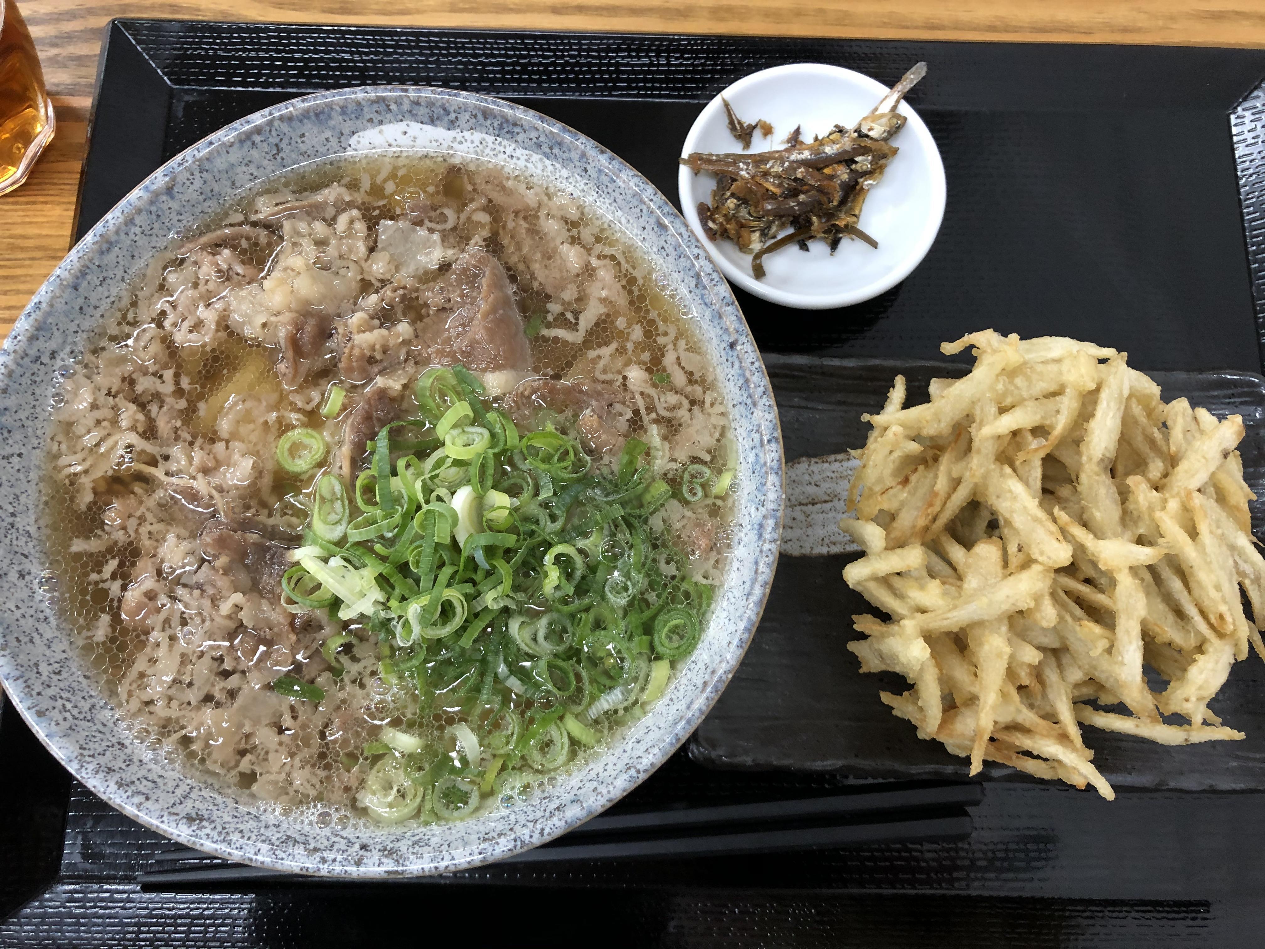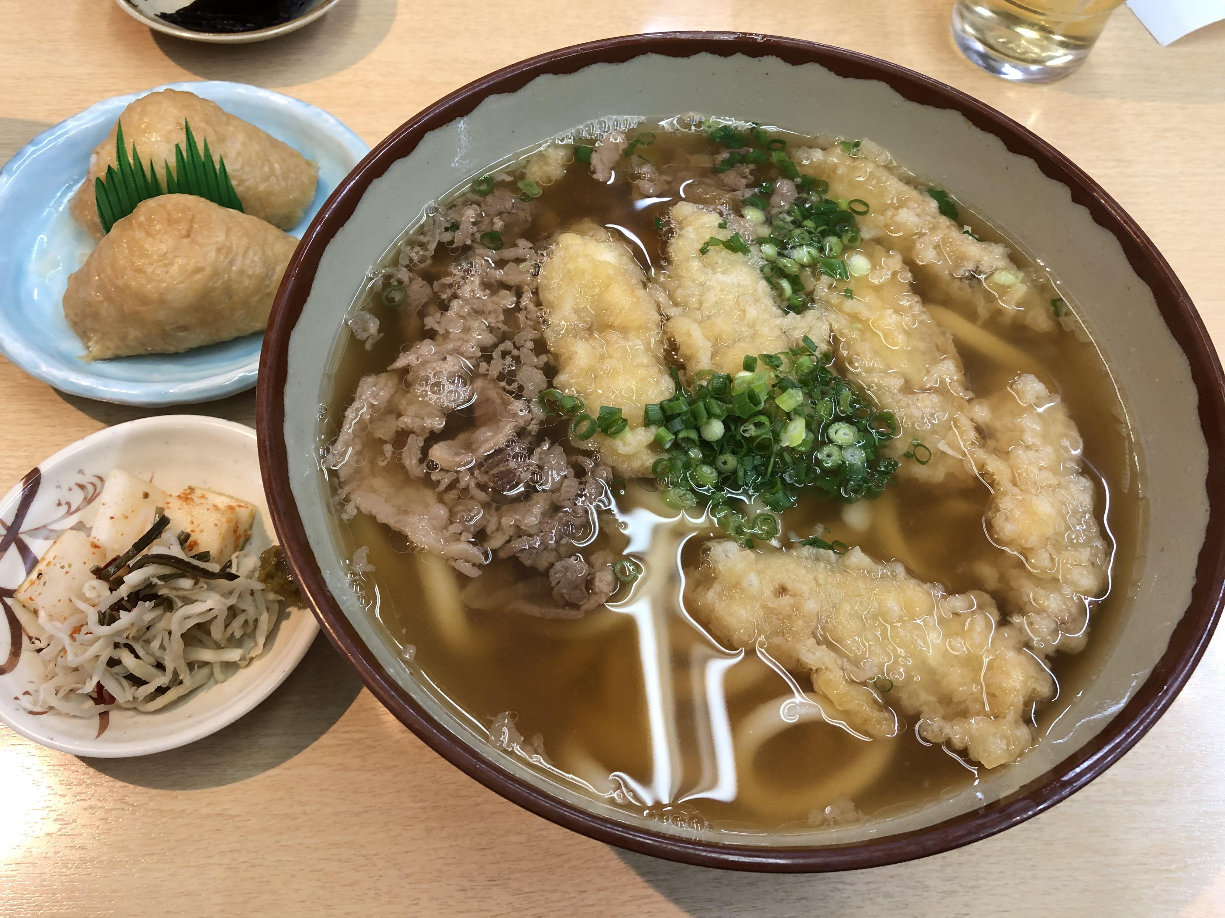 あつあつのごぼうてんとお肉たっぷりの肉うどん。