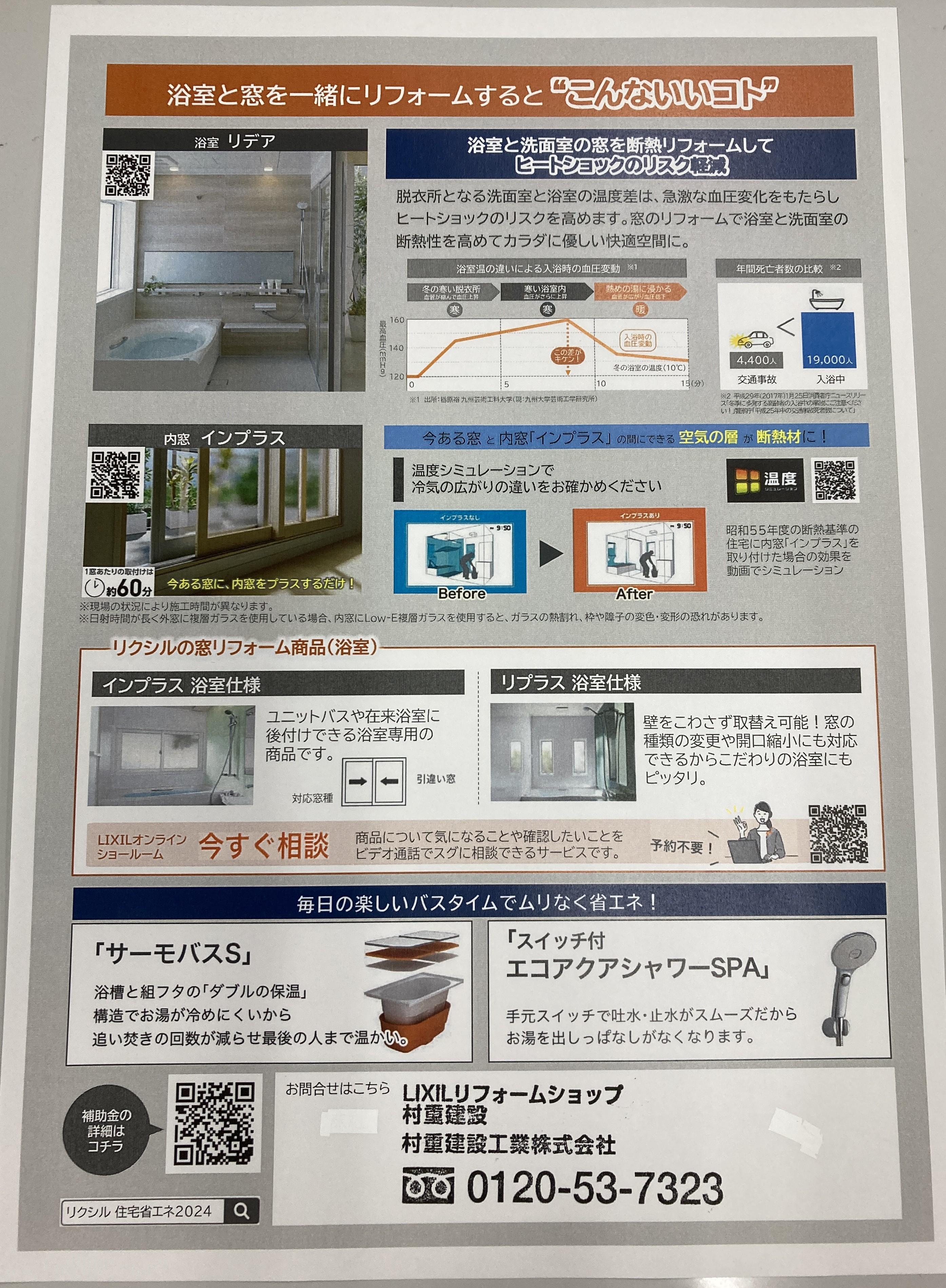 今回は浴室リフォームと窓のリフォーム 2つの補助金を活用したチラシの案内です。