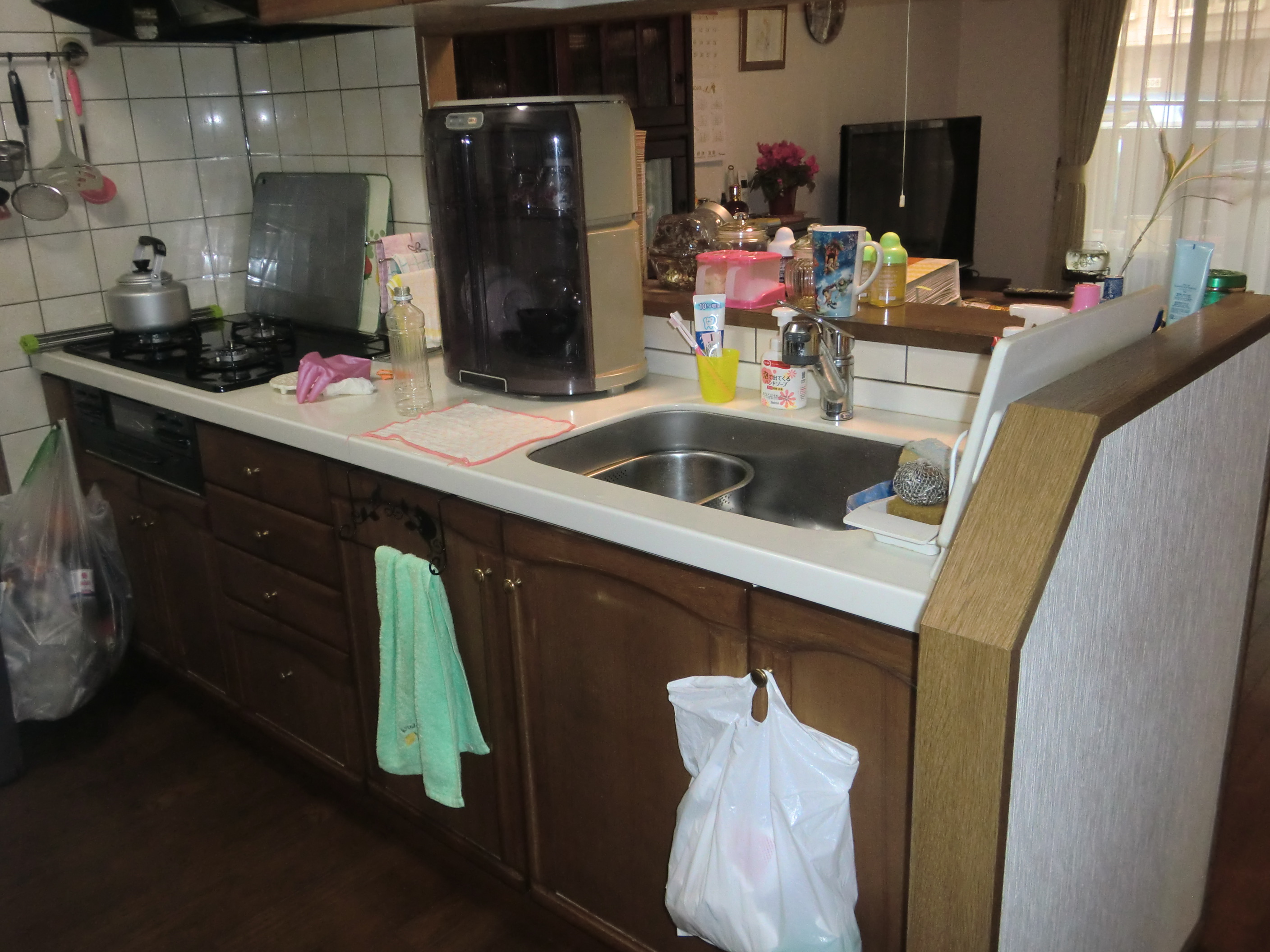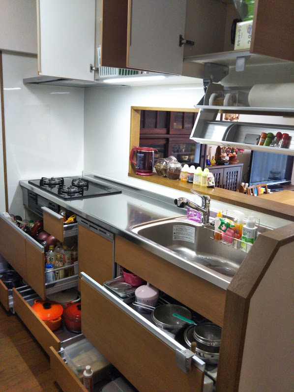 以前、食器乾燥機がキッチンの中央にありましたが、キッチン下に収納されることによりスッキリと作業しやすいキッチンになりました!出ていたものもすべて収まりました。こちらの収納もスタッフがお手伝いさせていただき、お喜びでした!