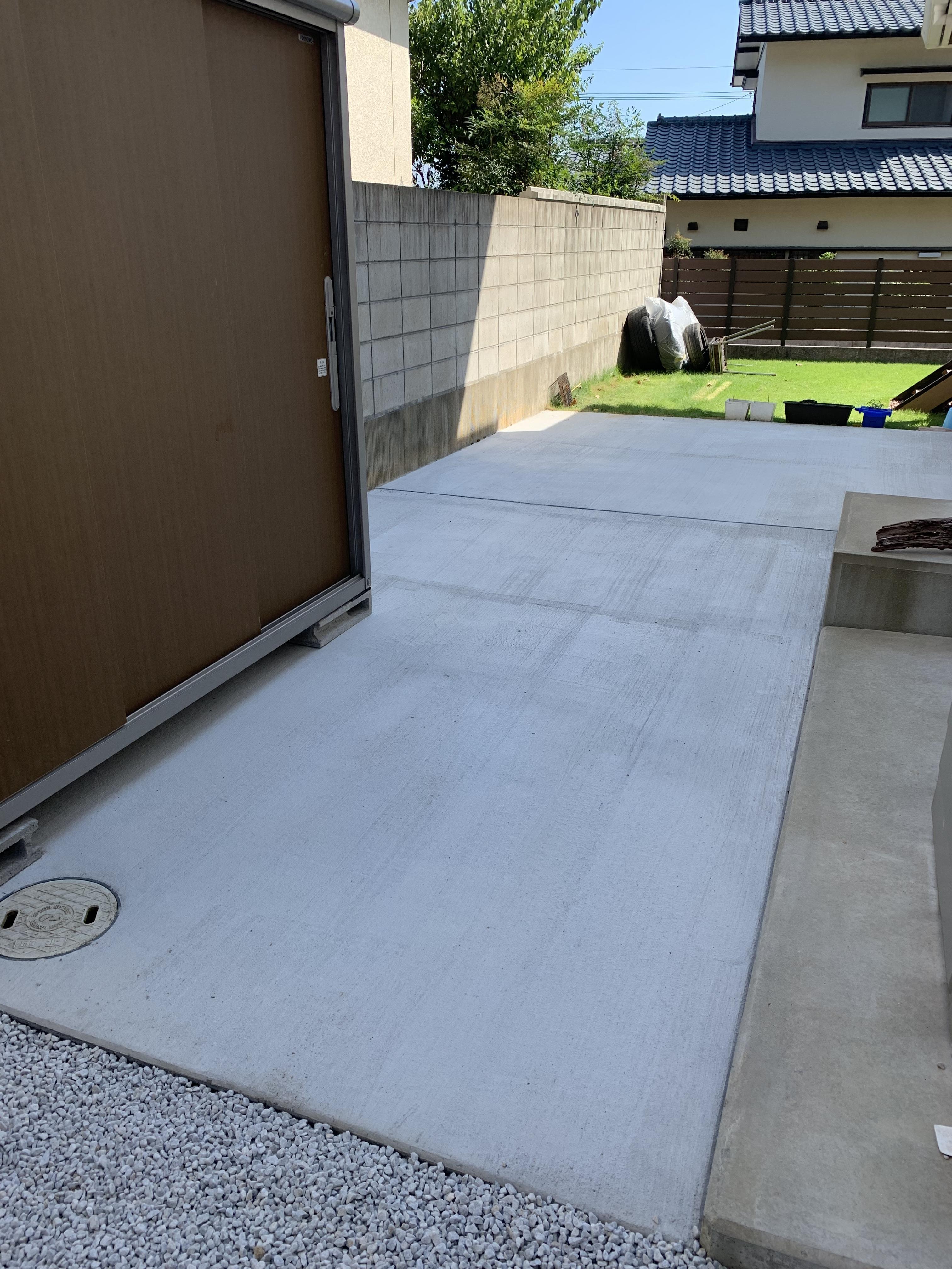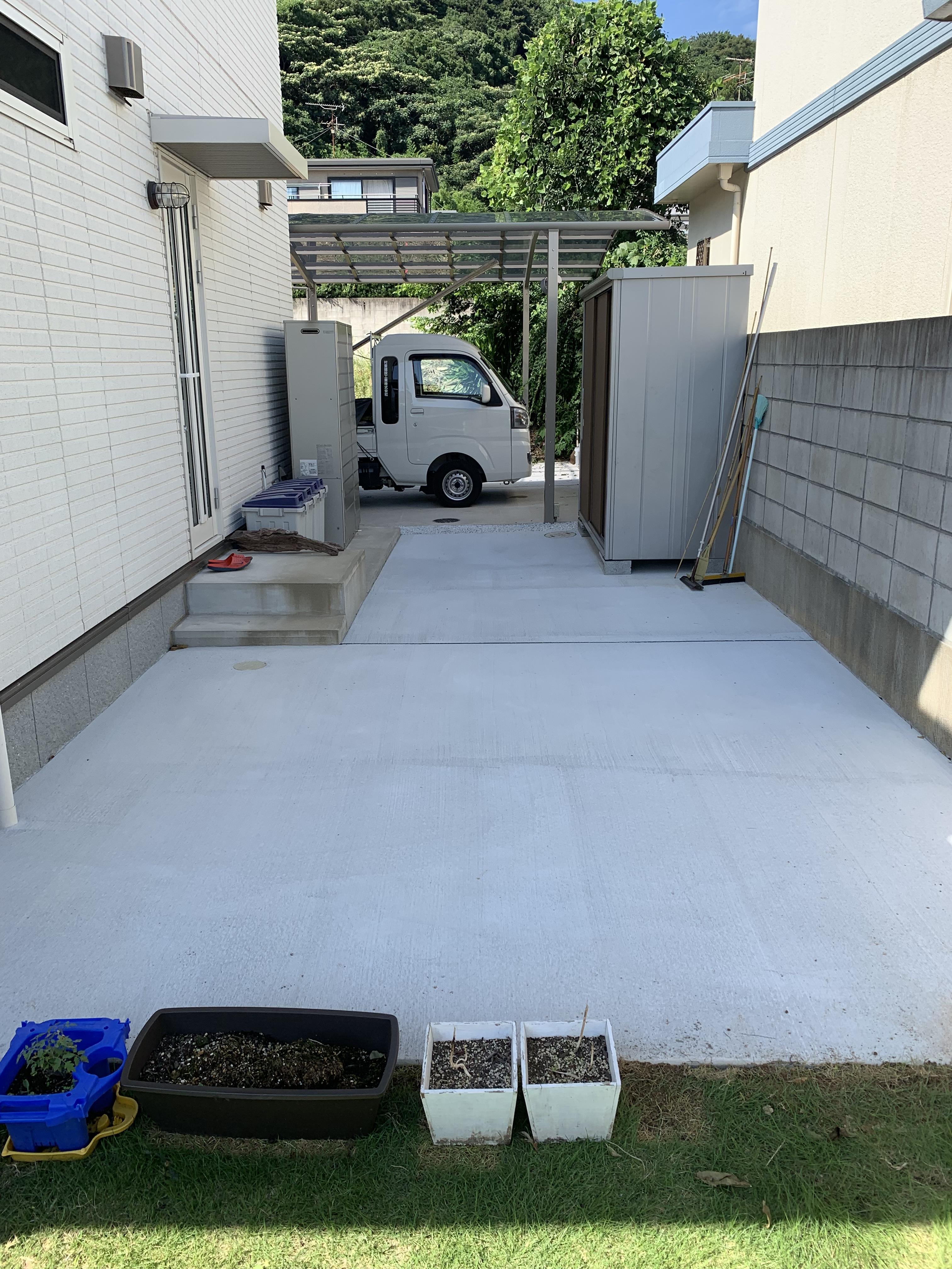 外構工事をさせていただきました。コンクリート舗装でとてもスッキリしました。草取りの心配がなくなりました。